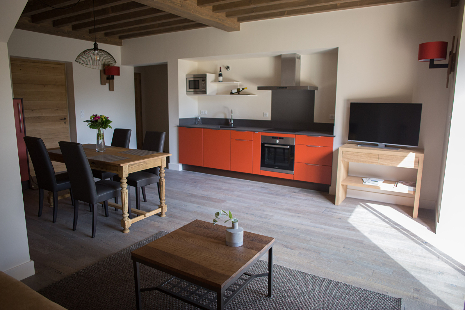 L’appartement le Grain de Blé pour 4 personnes est situé au rez-de-chaussée et dispose d’une belle cuisine équipée, d’un salon, d’une chambre avec lit double (lit Queen-size) et d’une chambre avec deux lits simples. Chaque chambre a sa propre salle de bain avec douche.