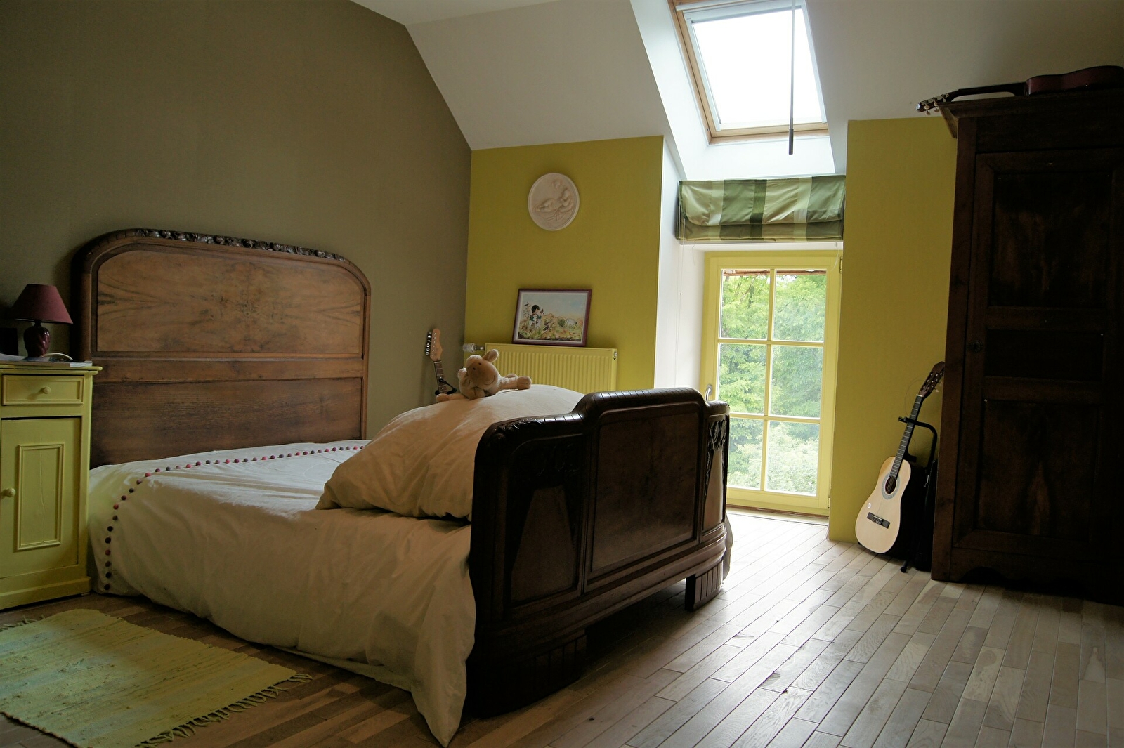 La chambre est située à l'étage, comprenant un lit deux places et un matelas d'appoint. Possibilité de mettre un lit bébé. Une salle d'eau avec douche à l'italienne et wc privatifs sont situés au rez-de-chaussée. Piscine chauffée à disposition.