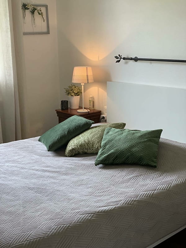 Le logement se compose de 3 chambres : 2 avec un lit double et 1 avec un lit simple, 1 salle de bain, un toilette séparé, une cuisine ouverte sur un salon / salle à manger.