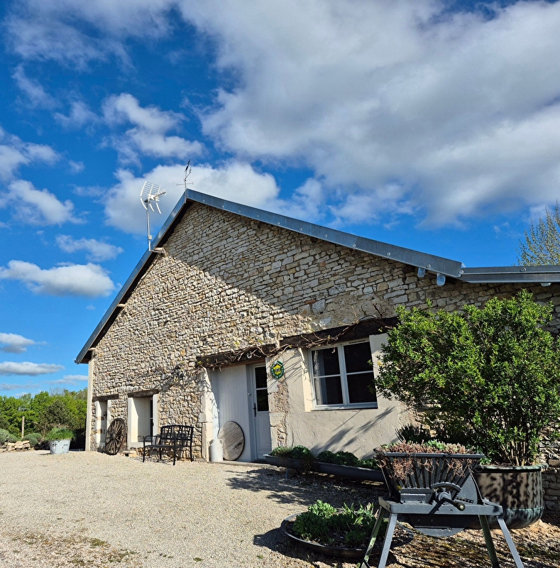 Dans un hameau, à la lisière de Gy, Cité de Caractère de Franche-Comté, vous pourrez, entre bois et étang, sur une propriété de 8 ha, vous installer dans une maison de caractère de 110 m² en pierre, de plain pied, récemment rénovée.