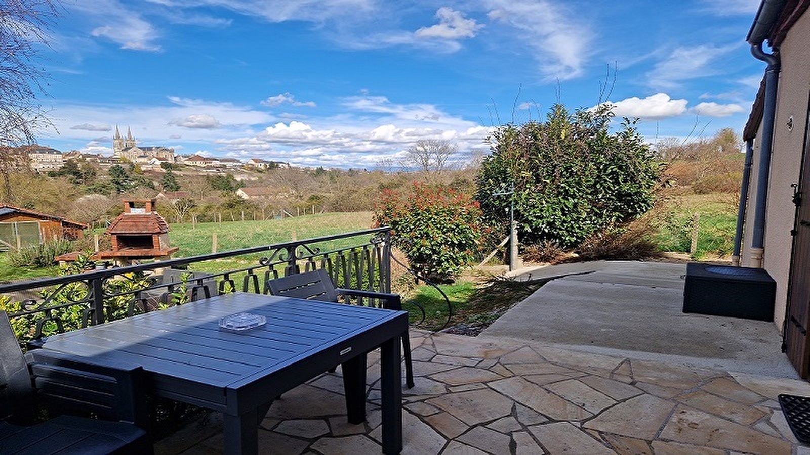 À 600m à pied de la station thermale, la Maison Type Longère N°1-120M² 4 Etoiles **** pour 7 personnes (1 Chambre au rez de chaussée et 3 chambres à l'étage est à votre disposition toute l’année avec des installations tout confort avec un point de vue extraordinaire sur le vieux bourbon.