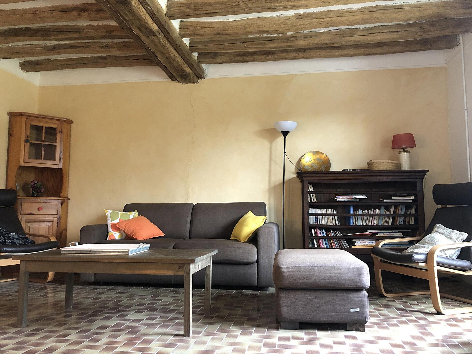 La maison dispose d'une grande terrasse accueillante avec un barbecue et d'un grand jardin. Aucun vis à vis. Vous êtes en pleine campagne.