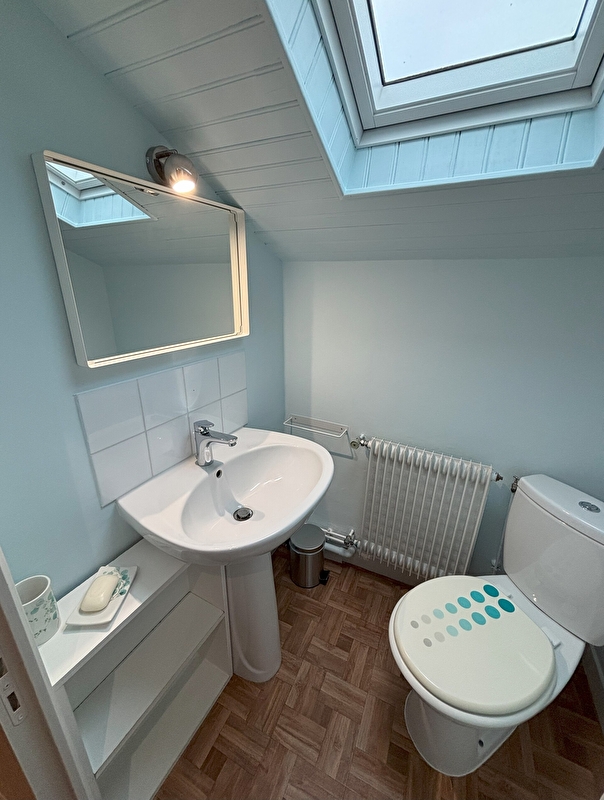 La maison comprend trois chambres, une salle de douche avec WC, ainsi qu’un cabinet de toilette indépendant.