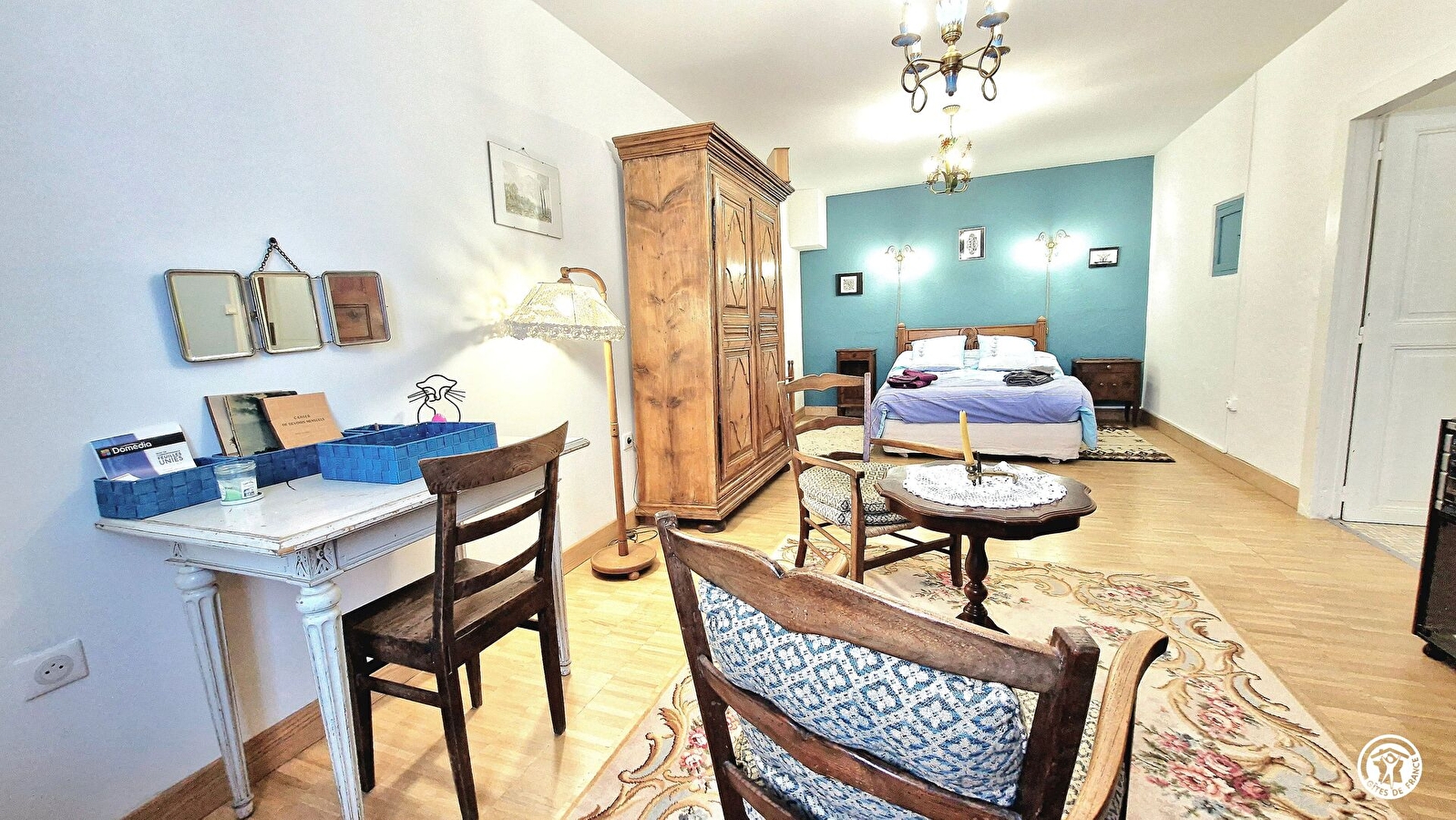 Au sein de la maison bourgeoise de 1900 des propriétaires, appartement en rez-de-chaussée avec entrée indépendante et petite cour privative non close. Parking sur le trottoir devant le gîte. Entrée sur pièce à vivre comprenant une cuisine équipée ouverte sur espace salle à manger et espace salon avec télé et internet ; une chambre avec 1 lit 140x200 et bureau permettant le télétravail ; une salle d’eau avec grande cabine de douche et wc. Equipement bébé (chaise haute, lit parapluie, parc, pot, tapis sol et baignoire). Acceptation 1 animal à 2€/jour. Formule tout compris : chauffage, électricité, linge de cuisine, linge de toilette, linge de lit et ménage fin de séjour inclus.
