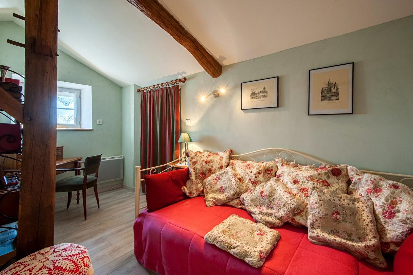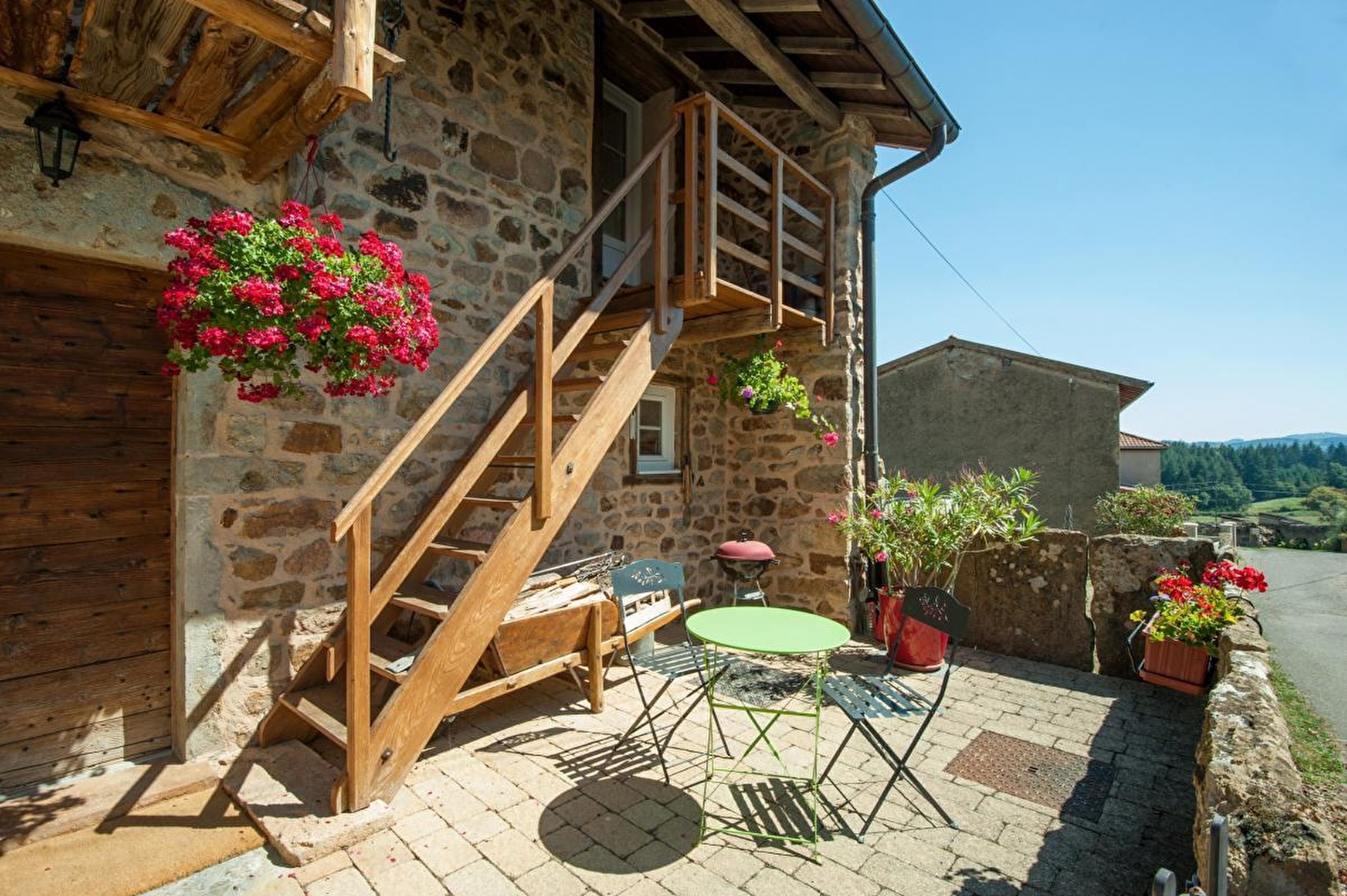 Michel (né dans le hameau) & Geneviève vous ouvrent les portes d'un authentique & très élégant corps de ferme traditionnel de caractère du XVIIIème siècle, pétri d'histoire & restauré dans les règles de l'art, blotti au calme en lisière de pâture accueillant en saison de paisibles agneaux & brebis (sans nuisance). Totale tranquillité au cœur d'un mini hameau rural typique, parfaitement réhabilité, lové à flanc de coteau sud exposé au creux d'un ravissant écrin préservé de nature & verdure, sur un vaste plateau "ouvert" de bucoliques prairies bocagères dominant la verdoyante vallée de la Grosne, adossé aux collines boisées du massif Sud Bourgogne accessibles à deux pas (nombreux sentiers balisés, à parcourir à pied ou VTT lors de reposantes balades). Véritable petit coin de paradis pour petits & grands aux confins de la douce campagne vallonnée du Haut Clunisois (territoire protégé en "Zone Natura 2000" & ZNIEFF pour ses riches écosystèmes faunistiques & floristiques). Cadre & site absolument ressourçant et enchanteur. Splendides paysages et vue panoramique sur la campagne environnante avec les monts du Clunisois, Mâconnais & Beaujolais s'affichant en toile de fond. Spacieux gîte de très bon confort. Chaleureux cachet campagnard aux accents contemporains sublimé par un magnifique escalier "colimaçon" en fer forgé (provenant d'une chapelle datant du XIXème), comme par les riches traces du bâti d'origine (murs en pierres, poutres & reconstitution du "séchoir"). Beaucoup de charme. Ultra douillet. Ambiance cocooning & cosy. Large terrasse close (exposée & ombragée), fermée par les fameuses "pierres levées" ayant donné leur nom à la maison.