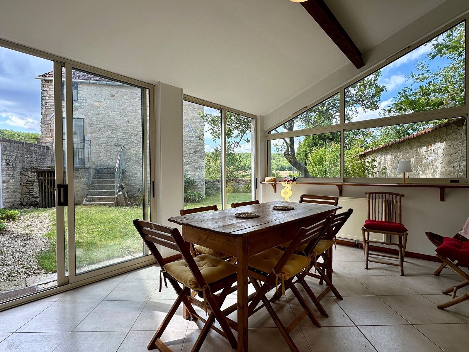 Au rez de Rez-de-chaussée : séjour convivial avec cuisine entièrement ouverte et salle donnant accès à une salle à manger type véranda. Endroit agréable et très lumineux.