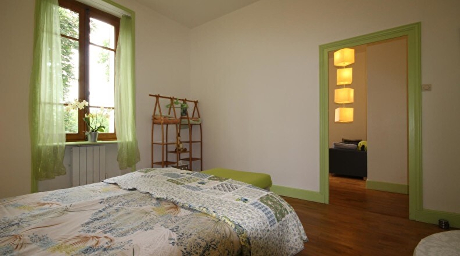 Belle vue dégagée sur la campagne environnante. Composition : 4 chambres au 1er étage. Wifi. 2 suites avec salon séparé (lit 160x200 cm) avec salle d'eau et balcon privé (douche/WC). 1 suite familiale composée de 2 chambres indépendantes et communicantes (lit 160x200 cm + 2 x 2 lits 1 place superposés 80x200 cm) avec salle de bain (baignoire/WC). 1 chambre double (2 lits 80x200 cm modulables) avec salle d'eau (douche/WC). Kitchenette en accès libre (micro-ondes, réfrigérateur, lave-vaisselle). Jardin et terrasse couverte, barbecue. Parking privé. Local fermé pour vélos et motos. Restaurant situé à 300 m.