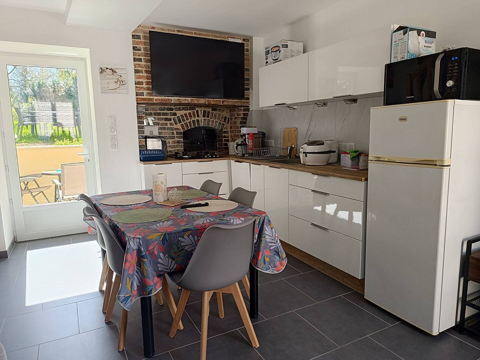 Détendez-vous dans ce logement calme et lumineux, avec son terrain entièrement clos et sa petite terrasse . Cuisine équipée avec four a pain restauré .