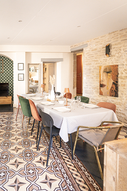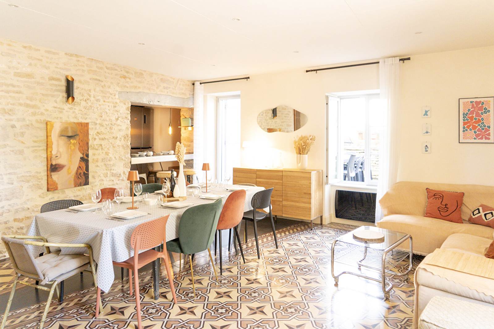 Maison de Charme en pierre apparente au coeur du village viticole de Savigny-lès-Beaune alliant modernité et authenticité. Une vaste pièce à vivre pour partager des moments conviviaux, 5 chambres, 4 salles de bain pour 12 couchages (En + : lit bébé et lit enfant). Une terrasse et un jardin ensoleillés avec une multitude de jeux : salle billard, baby-foot, trampoline, table de ping-pong... A deux pas, tous les commerces de proximité (épicerie, boulangerie, bars à vin, restaurants..) et la route des Grands Crus à faire en voiture ou à vélo !
