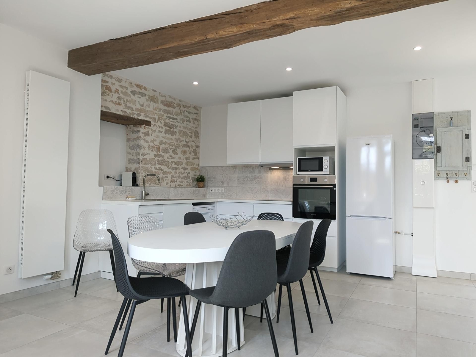 Au rez-de-chaussée: cuisine entièrement équipée avec accès à la terrasse, buanderie, WC indépendant, grand salon/séjour avec TV écran plat, wifi, 2ème accès à la terrasse. A l'étage : 4 chambres avec chacune 1 lit de 160 cm, une salle d'eau et WC. Maison entièrement rénovée, avec décoration soignée. Lit bébé sur demande.