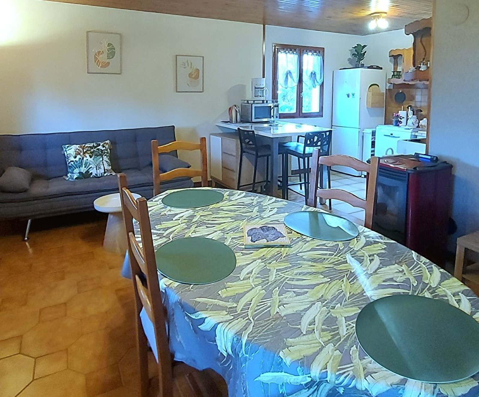 Cette agréable maison de 55 m² offre tout le nécessaire pour un séjour des plus agréables, alliant confort, simplicité et tranquillité. Elle se compose d’un séjour convivial ouvert sur la cuisine, idéal pour partager de bons moments, d’une salle d’eau avec douche, WC et machine à laver, ainsi que de deux chambres : l’une avec un lit 160 x 200cm, l’autre avec deux lits 90 x 190cm, avec possibilité de réunir les couchages selon vos besoins. À l’extérieur, vous profiterez d’un terrain clos bordé de haies, sécurisé par un portail métallique, avec la possibilité de stationner directement devant la maison. Un garage de 15 m² est également à disposition, parfait pour stocker motos, vélos ou autres équipements en toute sécurité. Pour votre confort en toute saison, la maison est équipée de volets en bois et de moustiquaires et l’électricité est incluse à hauteur de 8 kW par jour (le dépassement de consommation d'élecricité sera à régler sur place auprès des propriétaires avec un relevé de compteur à l'arrivée et au départ). Un sac de pellets offert par jour. Les animaux sont les bienvenus, dans la limite de deux, pour des vacances partagées avec toute la tribu.