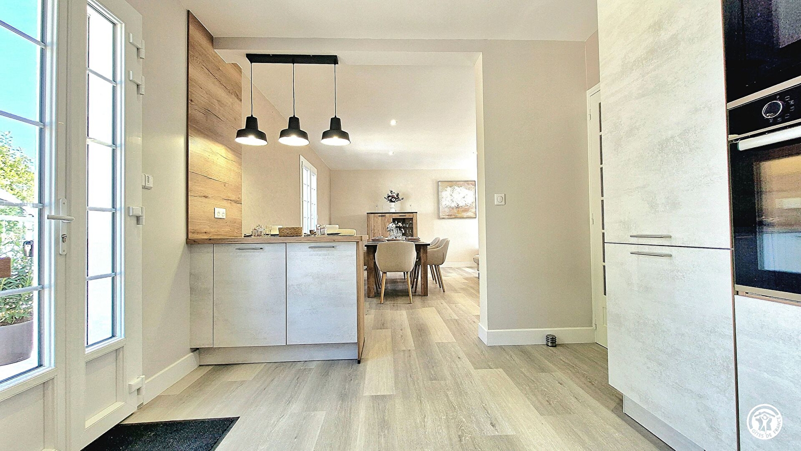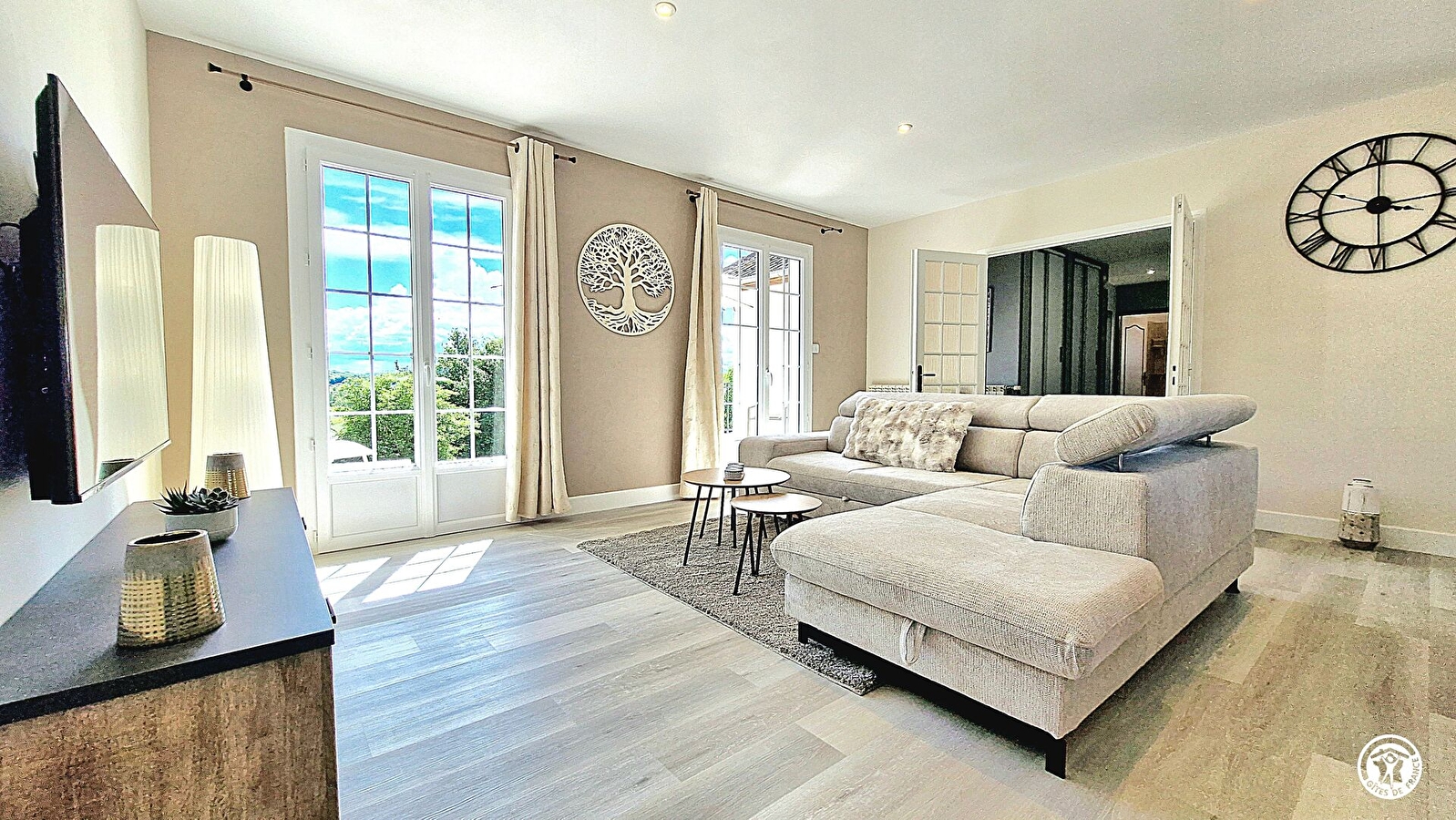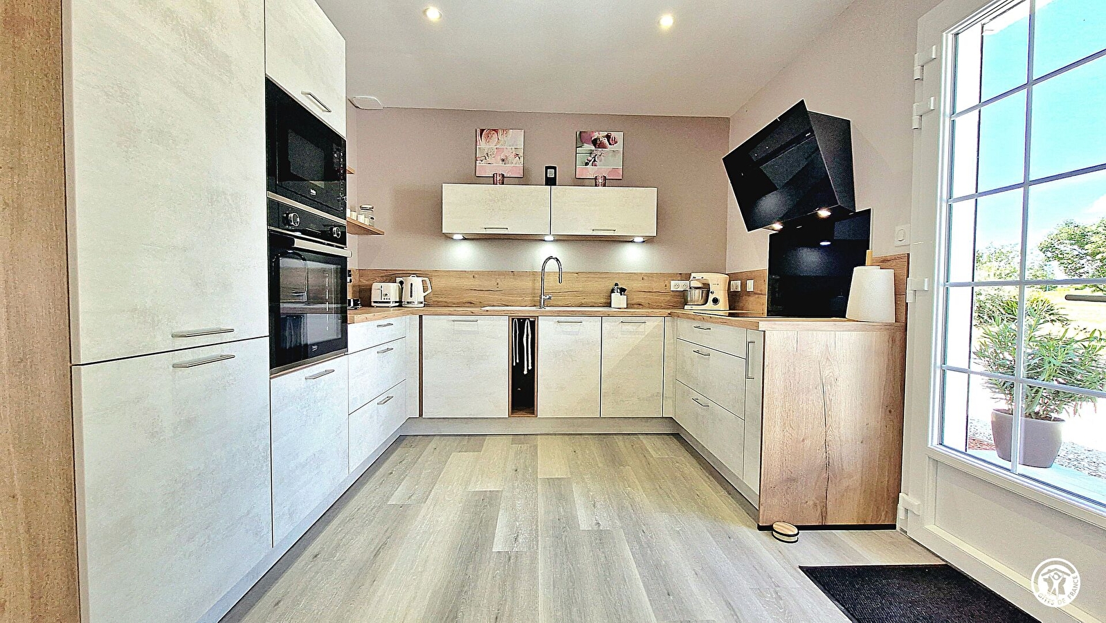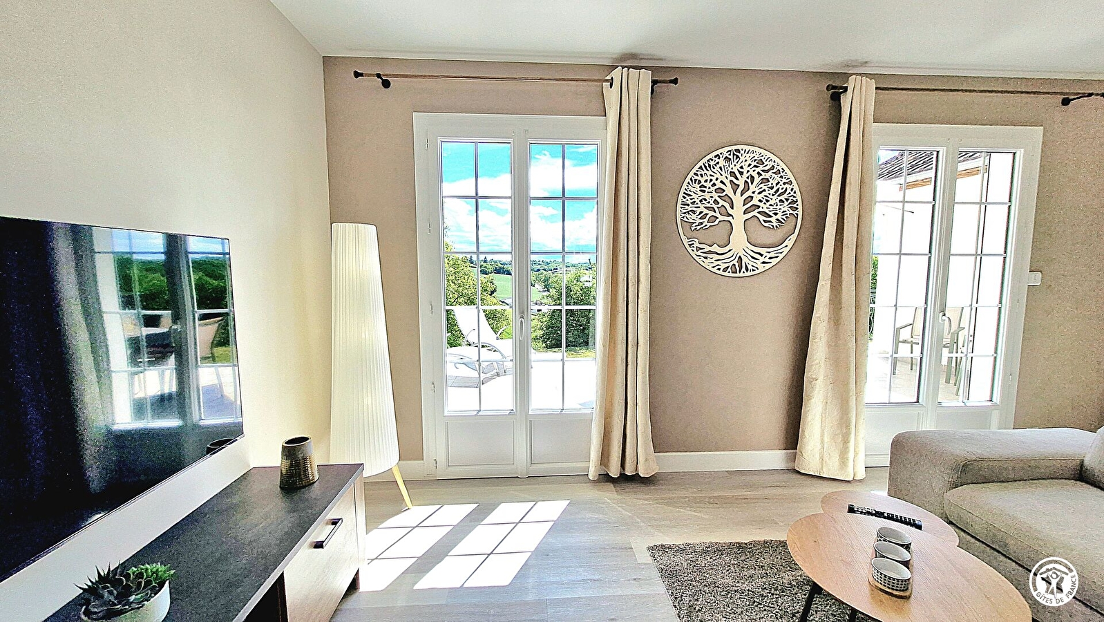 Venez séjourner au calme dans une maison individuelle entièrement climatisée, rénovée et joliment décorée bénéficiant d’une très belle vue dégagée sur la campagne. Garage et parking privé, grande terrasse avec salon de jardin, barbecue, spa (été) et jardin non clos. Grande pièce à vivre très lumineuse avec cuisine intégrée et équipée ouverte, espace salle à manger et salon avec télé et canapé convertible (possibilité couchage 1 personne 20€/nuit) avec accès direct à la terrasse. Espace nuit composé de 3 chambres (2 avec 1 lit 160x200 et 1 avec 2 lits 80x200 jumelables), 1 wc indépendant avec lave-mains et salle d’eau (douche grande dimension) avec double vasque. Formule tout compris : linge de lit avec lits faits à l’arrivée, linge de toilette, linge de cuisine, chauffage, électricité et ménage fin de séjour inclus