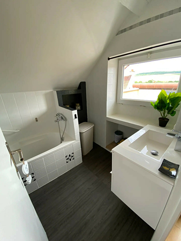 Vous aurez d'ailleurs vue sur celui-ci depuis la terrasse d'une de nos chambres (suite parentale lit double avec une salle de bain baignoire et douche). Deuxième chambre : lit double, salle de bain douche. Cuisine entièrement équipée, lave vaisselle plaque induction, four, micro onde.
