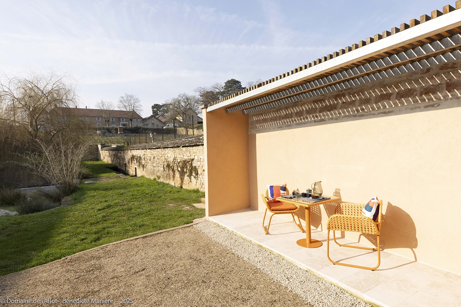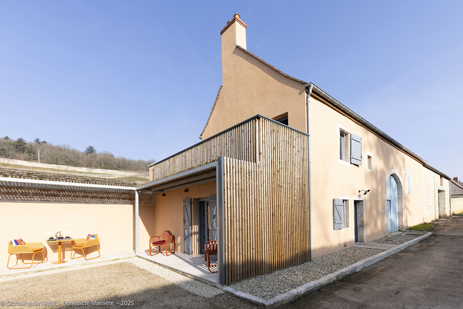 Enfin, la terrasse vous permettra de profiter pleinement du cadre naturel, avec vue sur les vignes du Clos.