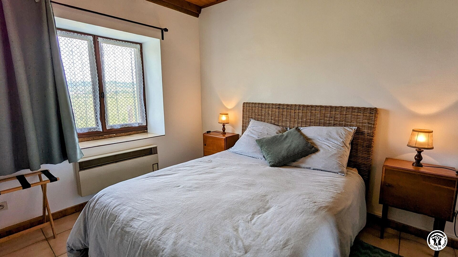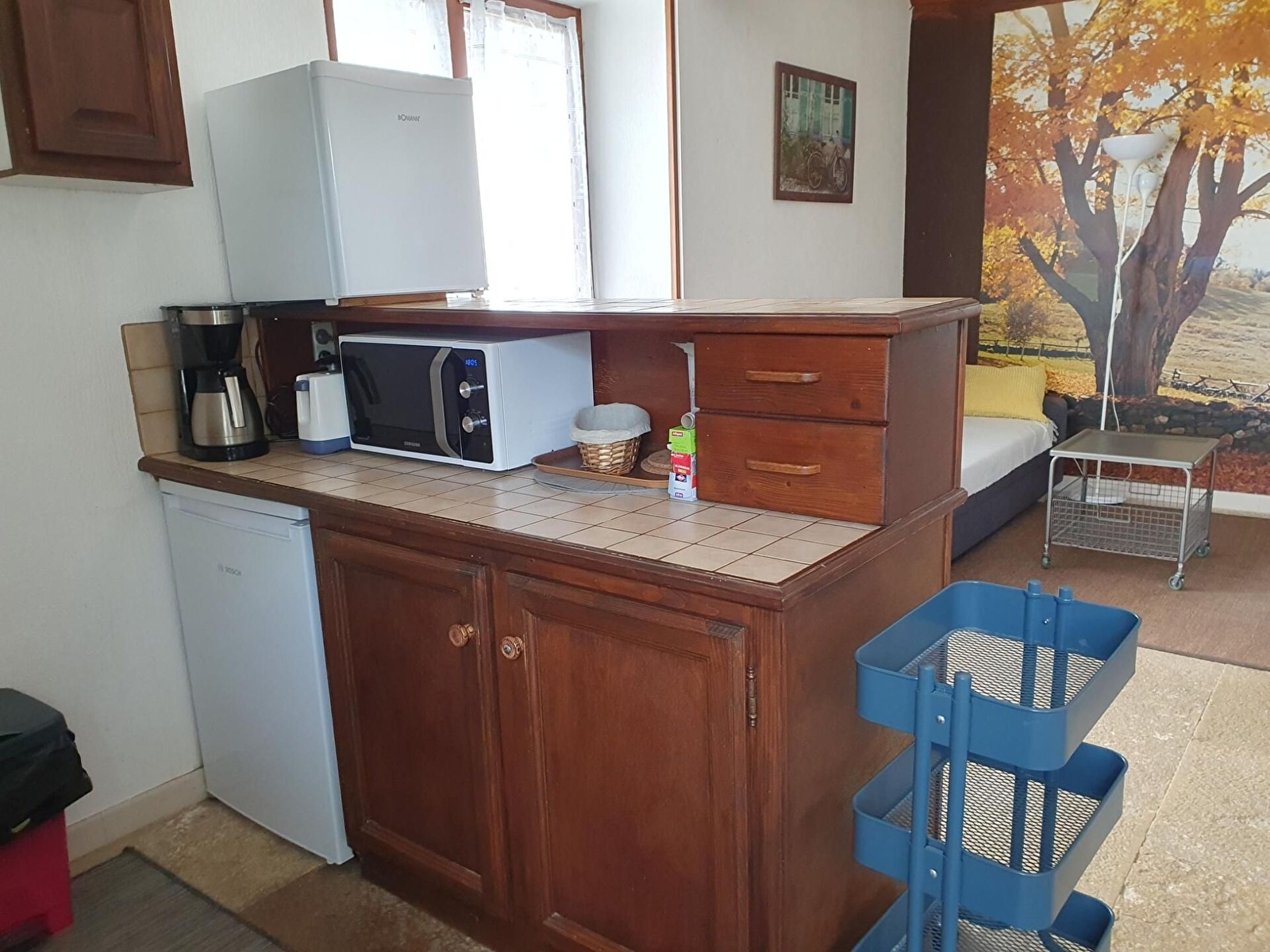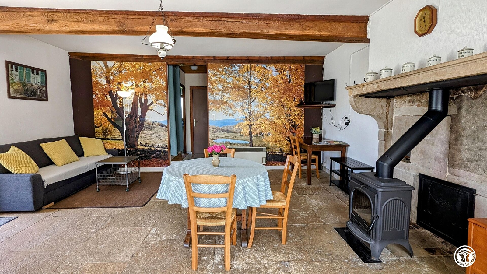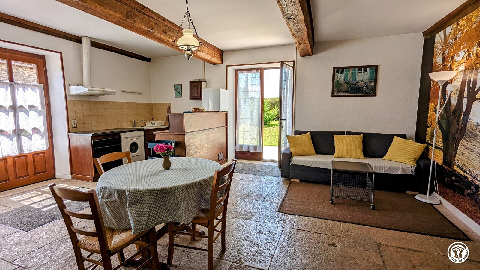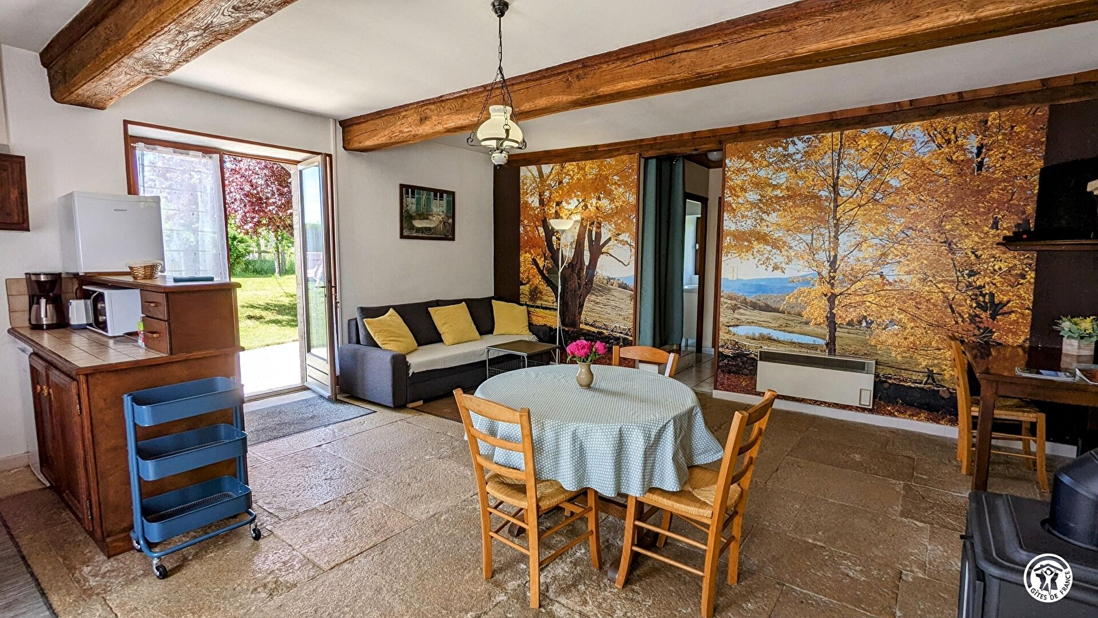 Maison ancienne et indépendante aménagée de plain-pied et située à proximité d'une exploitation agricole. Cuisine-séjour (avec canapé convertible) - salle à manger avec poêle à bois. 1 chambre avec 1 lit (140x190). Salle d'eau. WC. Terrasse. Cour de 100 m² (terrain non clos) -Parking. Bois offert.