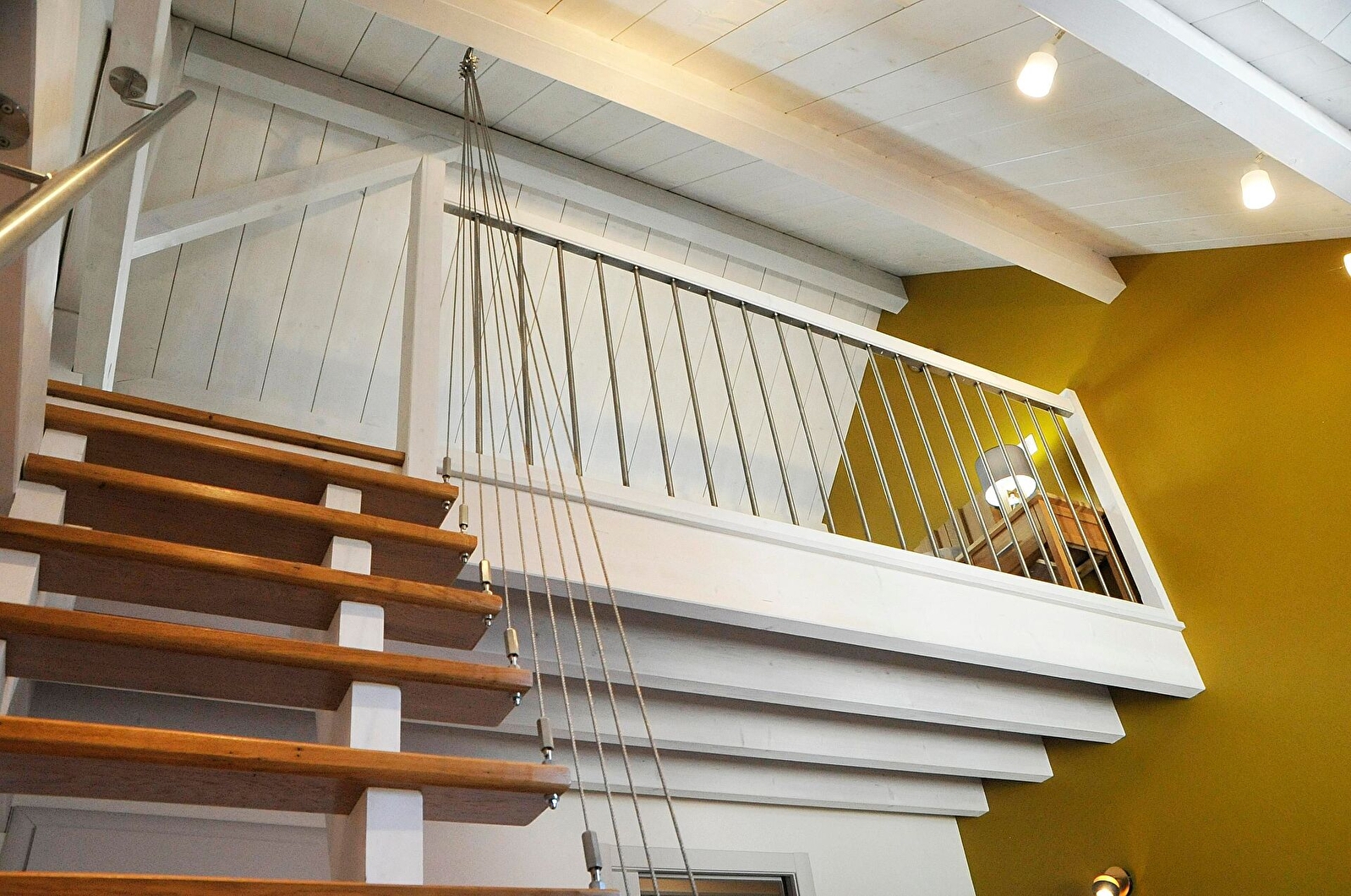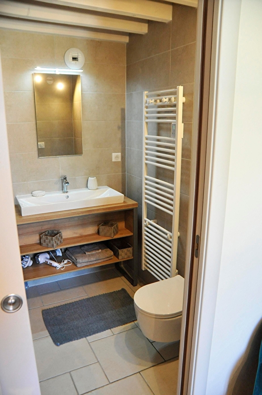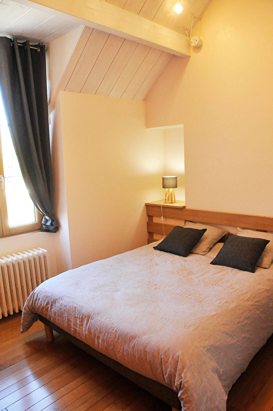 2ème chambre avec salle d'eau et WC indépendant , lit double 160*200, en mezzanine lit simple 140*190 ( Escalier de meunier ).