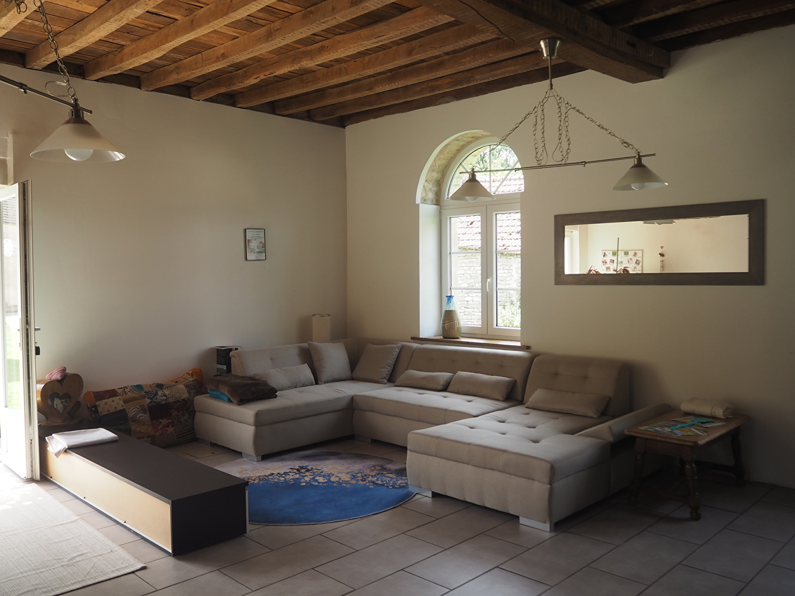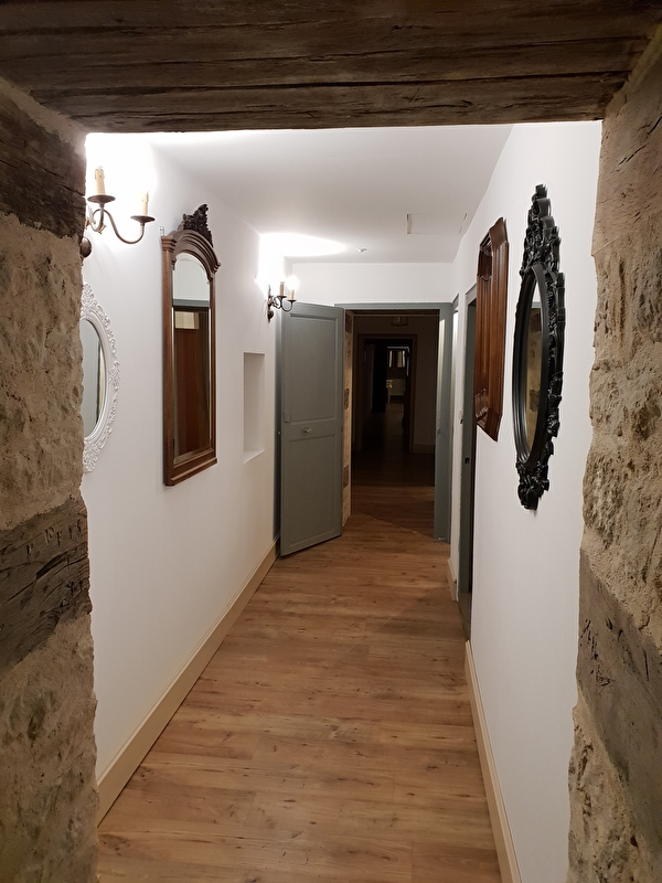 Gîte de 350 m2 comprenant un salon avec cheminée et télé, salle à manger, cuisine équipée (réfrigérateur, four, lave-vaisselle), 5 chambres, lits 180 ou 90 avec matelas à mémoire de forme, salle de douche et toilettes séparés. Jardin au calme bordé par la rivière, four à pain, barbecue.