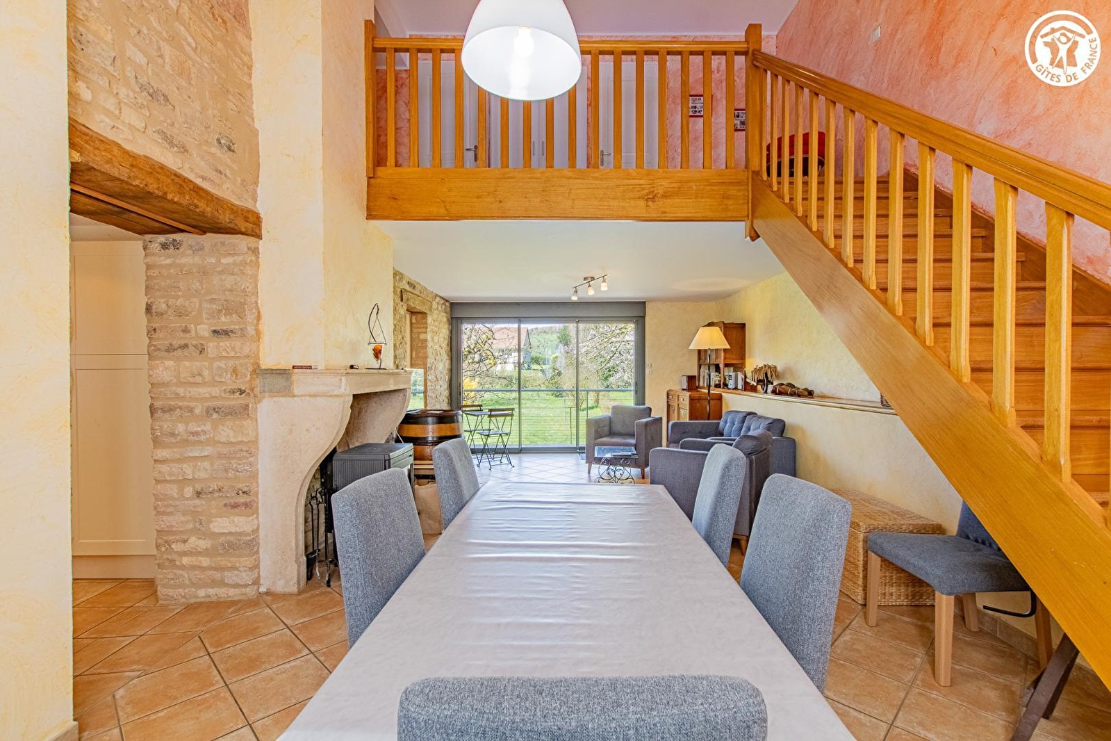 Anne & Jean-Pierre vous ouvrent les portes d'une authentique demeure traditionnelle de caractère du XIXe, parée d'une ravissante "galerie mâconnaise" typique restaurée avec soins, blottie au calme en bordure de ruelle à deux pas des vignobles & d’une l’église romane du XIIIe, au sein d'un pittoresque petit village viticole typique du haut Mâconnais, pétri de charme & chargé d'histoire, connu pour sa rare nécropole mérovingienne (402 sépultures des VI & VIIème siècles inventoriées) Quiétude & tranquillité en pleine douce campagne viticole vallonnée (sur un espace classé en ZNIEFF pour ses richesses faunistiques & floristiques), lové au creux d'un bucolique vallon de champs & prairies bocagères sous les crêtes boisées d'un vaste espace forestier sauvage (protégé en Zone Natura 2000 pour ses riches écosystèmes). Magnifique écrin paysagé alentour. Gîte de très bon confort. Très spacieux. Belle pièce de vie lumineuse ouvrant sur le jardin et la campagne environnante par une grande baie vitrée. Chaleureux cachet campagnard mixant traditions & modernité sublimé par une restauration soignée (manteau de cheminée, murs en pierres & linteaux en bois d'origine). Ambiance douce & dépaysante. Beaucoup de charme. Ravissant jardin clos de 400m² soigneusement paysagé, engazonné, végétalisé, arboré & fleuri, niché en lisière de prairies, offrant une large terrasse en gravier exposée & naturellement ombragée sous un joli cerisier (complété par une seconde terrasse côté cour).
