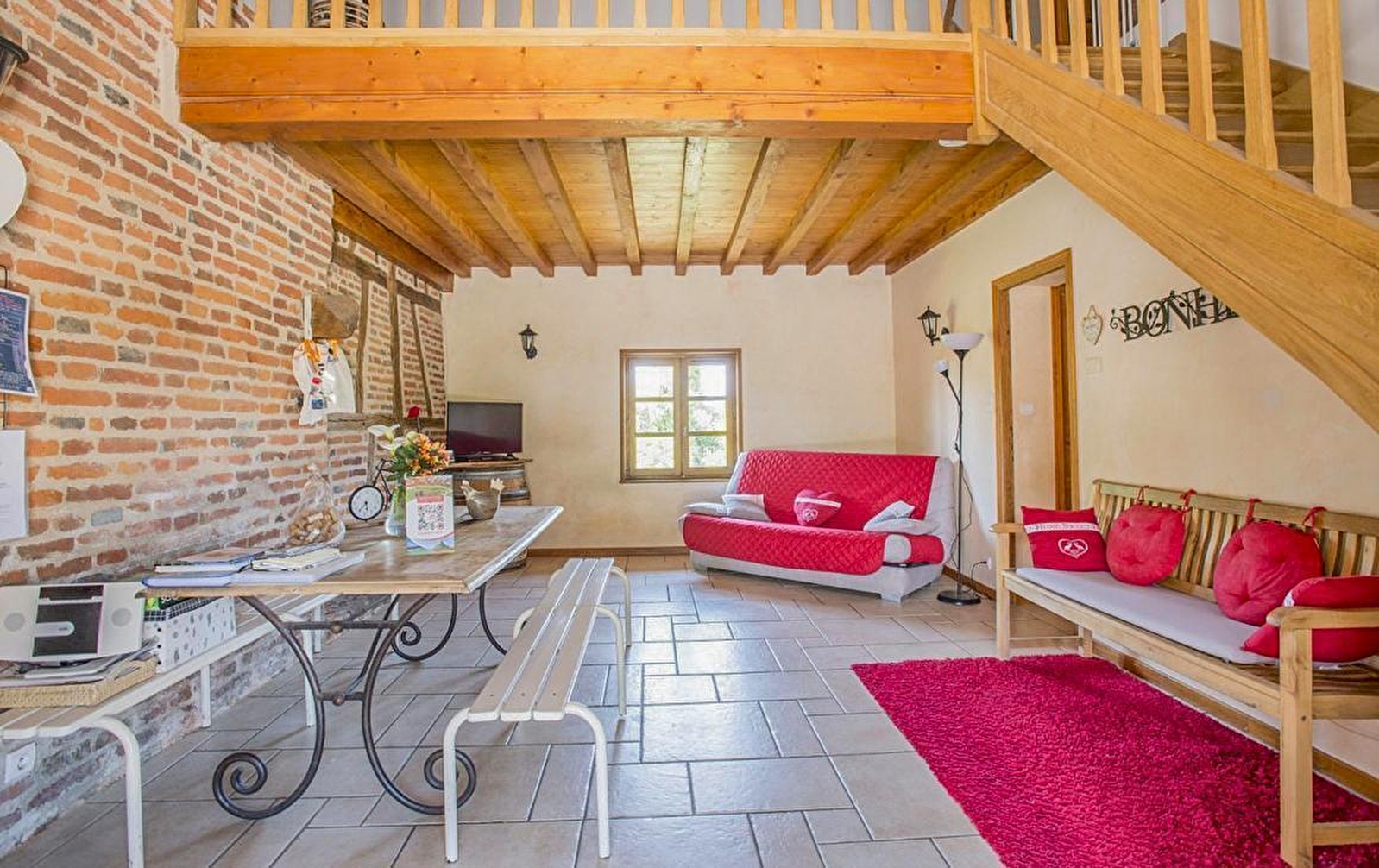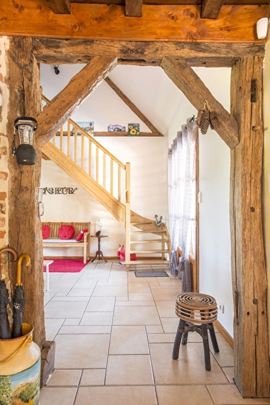 Composition : Maison individuelle sur 2 niveaux (rdc + 1er étage). Chauffage pompe à chaleur + poêle à bois (bois inclus). Climatisation. Wifi. TV bouquet SFR + Netflix. Rdc : séjour-cuisine-salon (canapé convertible 2 p. 140x190cm en appoint), 1 chambre (lit 2 p. 160x200cm), salle d'eau (douche), WC indépendant. 1er étage : 2 chambres (1 lit 2 p. 140x190cm dans chacune), mezzanine pallière (canapé convertible 2 p. 140x190cm en appoint), salle de bain (baignoire), WC indépendant. Terrasse abritée et ouverte. Terrain aménagé avec jardin potager. Parking privé. Local à vélos. Commerces et services 3.5 km. Gare 21 km. Golf 17 km. Gare TGV Creusot 52 km.