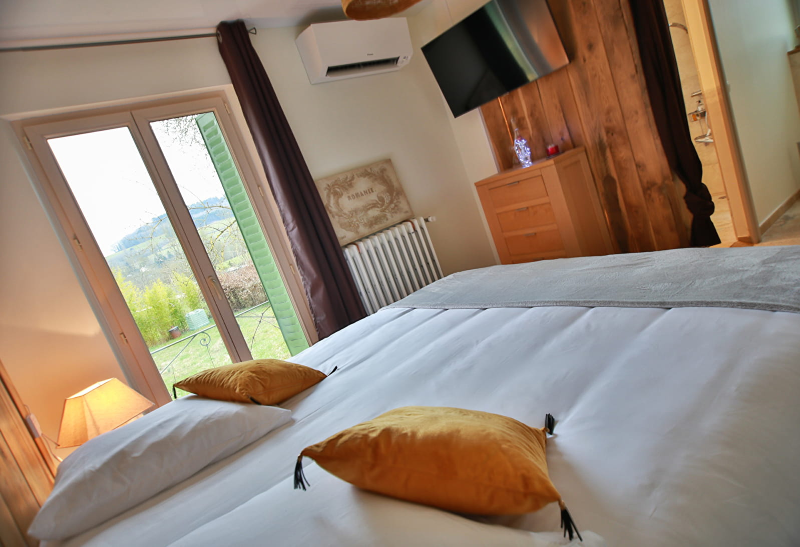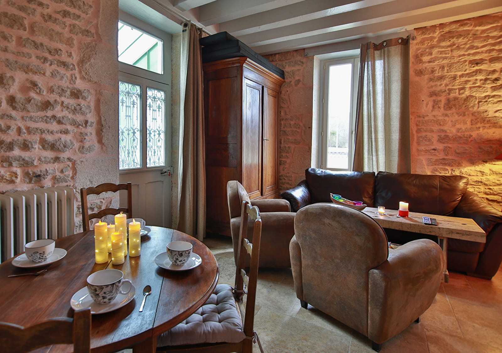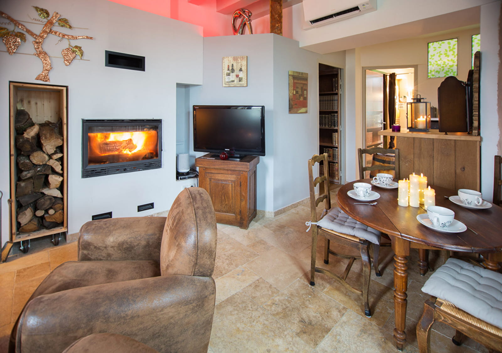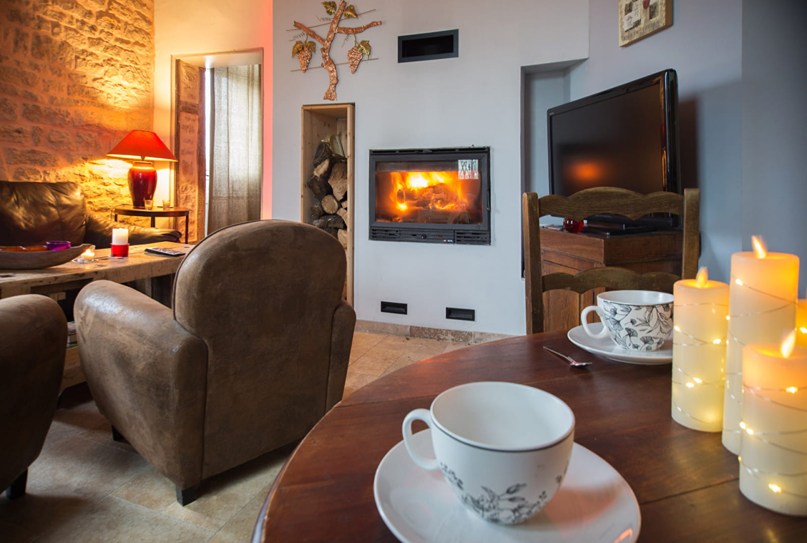 Cette maison historique en pierres entièrement rénovée et climatisée, datant de 1800 sur 2400 m² de terrain, comprend un séjour confort avec son plafond poutraison, son sol et murs en pierre et sa cheminée foyer fermé, ouvert sur une cuisine équipée. 2 chambres climatisées, chacune avec sa salle de douche italienne et WC, TV écran plat et accès WIFI gratuit.