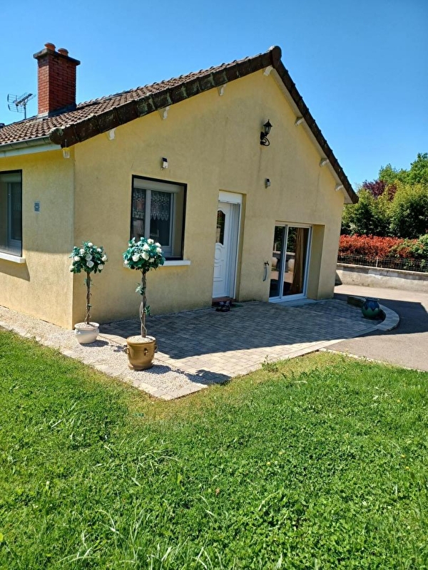 Composition du gîte : Maison individuelle sur 2 niveaux. Chauffage électrique. Rdc : Cuisine (cheminée / bois inclus), séjour-salon, salle d'eau divisée en 2 espaces (douche indépendante / vasque + wc), 2 chambres (lit 2 p. de 140x190cm / lit 2 p. de 140x190cm) dont une avec salle d'eau privative (douche). 1er étage : chambres en mezzanine divisée en 2 espaces de couchages séparés (sans porte) totalement indépendants sans vis-à-vis (lit 1 p. de 90x190cm / lit 2 p. de 140x190cm), wc indépendant. Terrain + terrasses + parking + garage/local vélos (1 place). Équipement complet pour 1 bébé. Commerces et services 3 km. Gare Creusot TGV 46 km. Surface au sol : 113m² (superficies en soupentes sous hauteur de 1.80m incluses). 2 animaux maximum acceptés.