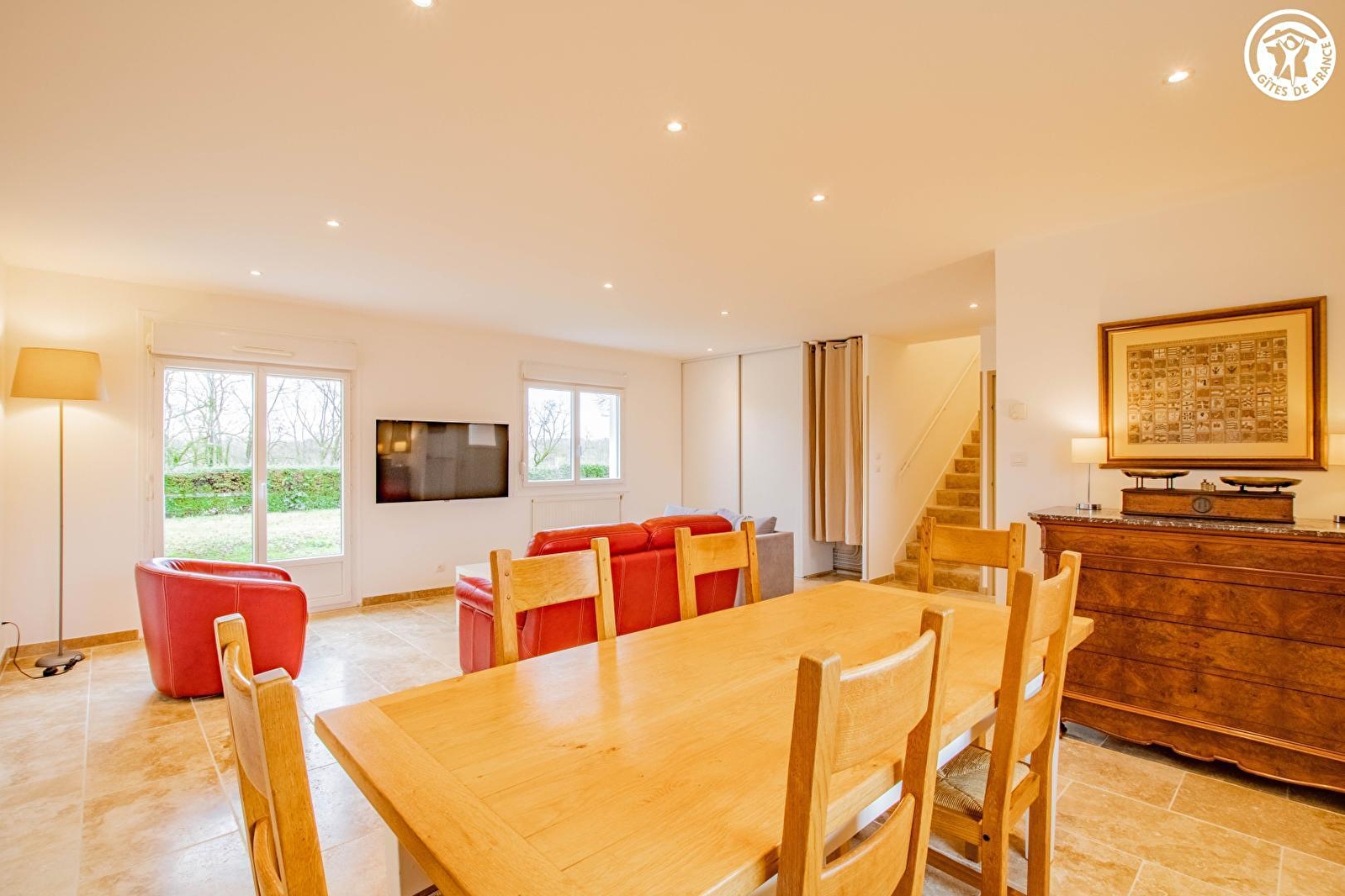 Pavillon "eighties" intégralement revisité en très confortable villégiature, blotti en impasse au creux d'un paisible lotissement résidentiel chargé d'histoire - ancien quartier de "mineurs" lié jadis à l'importante activité houillère des lieux - jouxtant le centre-ville & l'intégralité des commodités. Emplacement privilégié, bordant le golf et le parc paysagé du Maugrand & ses deux étangs (aménagé sur 180ha pour la promenade, les loisirs & la pratique sportive / parcours muséographique, aires de jeux pour les enfants, ferme animalière avec lamas, paons, moutons...), tout proche des lacs qui ceinturent la cité dont le grand étang du Plessis, littéral "poumon vert" blotti en lisière d'une vaste forêt préservée. A deux pas de l'apaisante campagne creusotine environnante, conjuguant montagne douce, bocage vallonné, rivières & grands lacs-étangs poissonneux. Riche d'un patrimoine industriel rare qu'elle a su valoriser (vestiges parfaitement conservés à découvrir sur place et musée de la mine permettant de visiter d'originelles authentiques galeries !), Montceaux s'est depuis totalement reconvertie vers les activités ludiques sportives, de pleine nature & culturelles - en transformant les carrières de ses anciens parcs miniers en lacs & parcs paysagers - et propose aujourd'hui 280 hectares d'espaces verts, véritables havres de paix & de repos. Gîte de très bon confort. Spacieux & lumineux. Cachet contemporain soigné à l'élégante sobriété. Ambiance zen & douce. Jardin engazonné & arboré de 700m² comprenant 2 cerisiers (cueillette possible) & une terrasse en gravier.