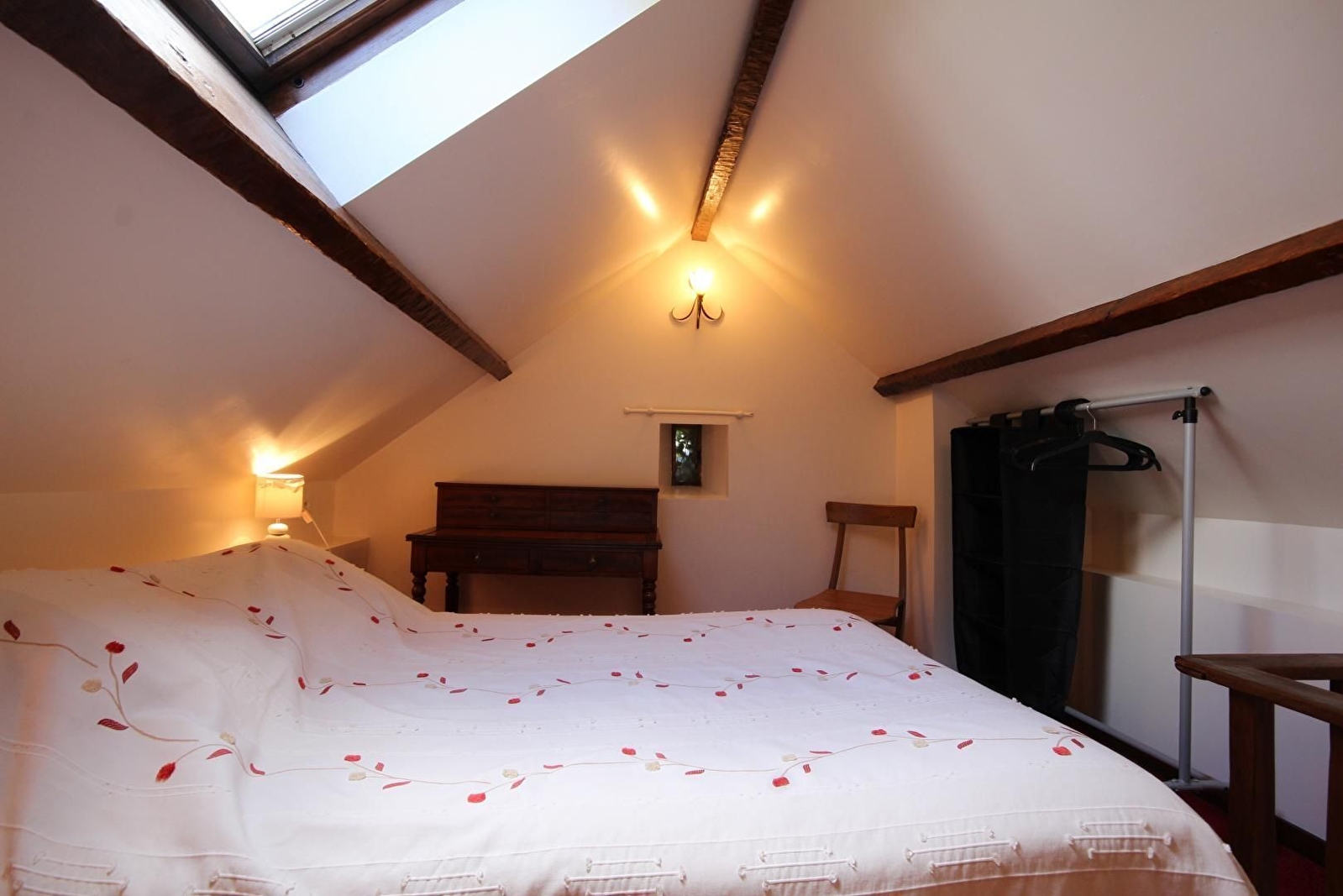 Au coeur du Parc Naturel Régional du Morvan, maison indépendante en pleine nature, partagée en 3 gîtes, avec propriétaire à proximité. Accès par chemin privé, route à 300 m. Séjour, cuisine, salle d'eau, wc. A l'étage 1 chambre en mezzanine avec 1 lit 2 personnes mansardée. Buanderie avec lave-linge commun aux 3 gîtes, chauffage central compris. Ping-pong. Piscine intérieure chauffée toute l'année avec accès indépendant et réglementé (réservation de plages horaires) chez les propriétaires. A proximité des lacs (Les Settons, Pannecière), berceau de la randonnée. Château-Chinon à 3 km avec ses musées du Costume et du Septennat. Le gîte n'est pas configuré pour recevoir des enfants, juste 2 adultes.