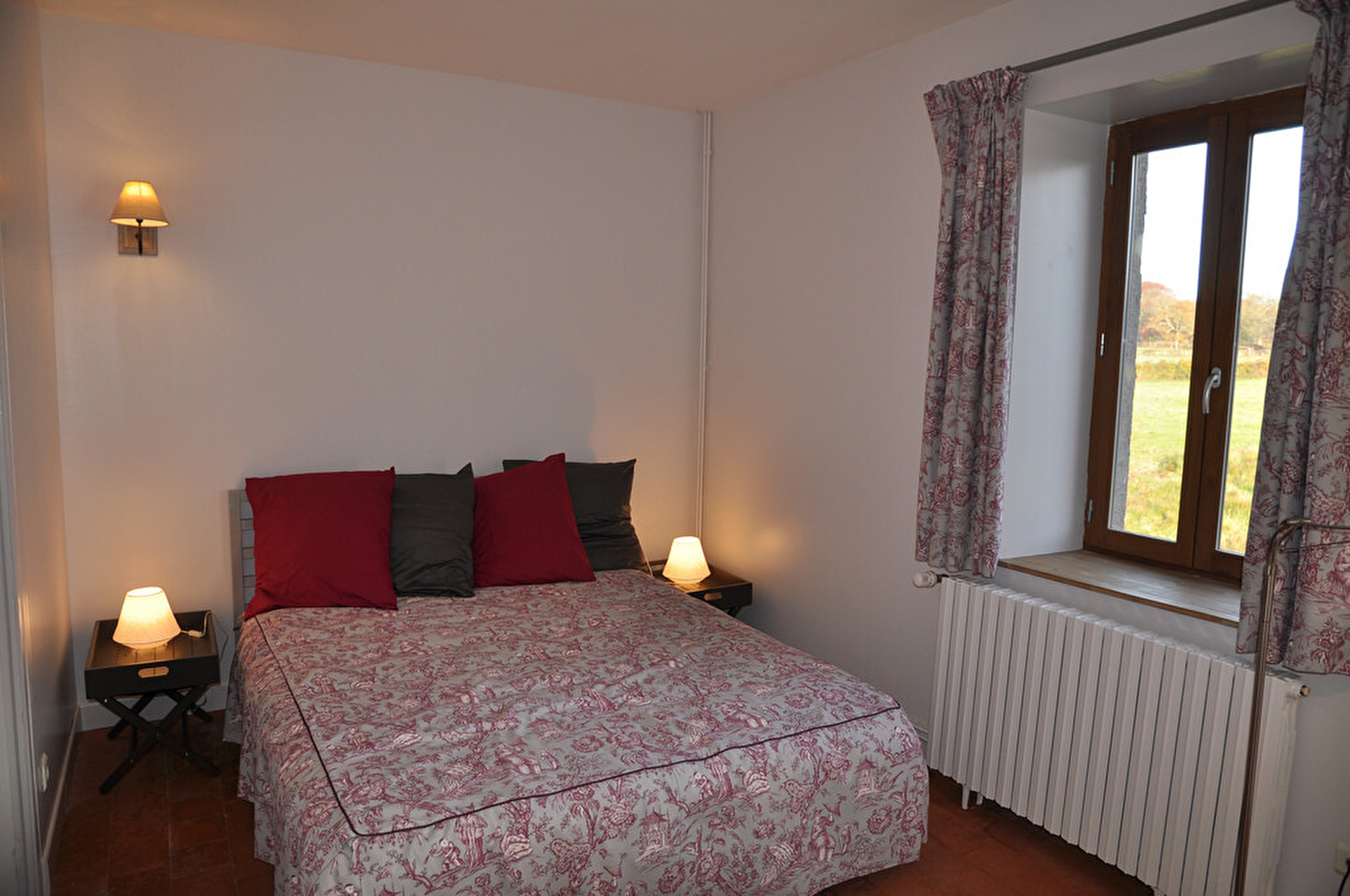 Composition : Plain-pied : séjour-salon (TV, lecteur DVD, cheminée, canapé convertible 2 personnes supplémentaires), cuisine équipée avec espace repas (four, plaques induction, lave-vaisselle, réfrigérateur/congélateur, micro-ondes, lave-linge), 1 chambre (lit 160x200cm, bureau), salle de bain (baignoire), WC indépendants. Terrain clos 1000m², avec vue à 360° sur la campagne, les prés et les bois. Terrasse sur cour. Lit bébé et chaise haute à disposition. Internet WIFI (fibre). Commerces & Services : 10 km.