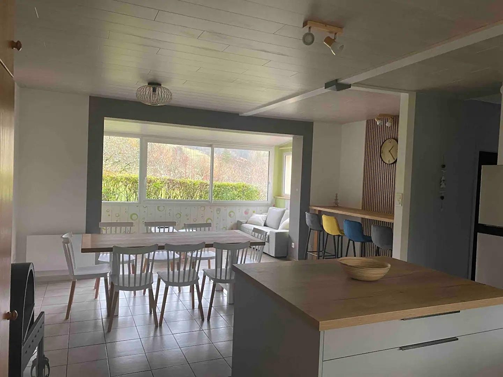 Idéalement situé, au calme, dans une impasse face au fort Saint André et au pied du Mont Poupet cette maison se compose d'une pièce de vie avec cuisine toute équipée, salle à manger avec poêle à bois (fourni gratuitement) et coin salon avec TV, d'une chambre avec 3 lits simples (dont un lit gigogne), d'une chambre avec 1 lit double 160*200, d'une salle d'eau avec douche et d'un WC indépendant. Une troisième chambre à l'étage inférieur avec 1 lit double (160*200). Pour votre plus grand confort, les lits seront faits à votre arrivée, les serviettes de toilettes sont fournies et le ménage est inclus. Côté extérieur, un salon de jardin, un barbecue et un terrain de pétanque vous permettront de profiter du calme environnant. Le centre thermal se trouve à 5 minutes en voiture et à 20 minutes à pied, et tous les commerces se trouvent à 5 minutes en voiture. Voie verte, parcours randonnée, VTT accessibles directement depuis la maison.