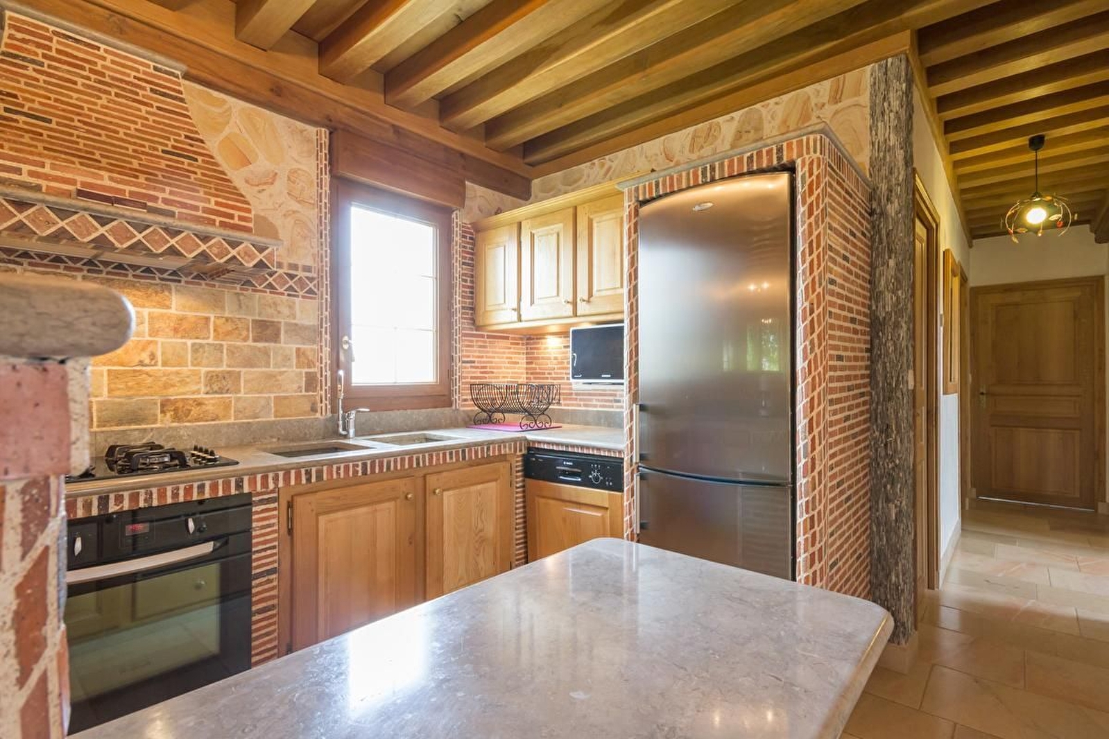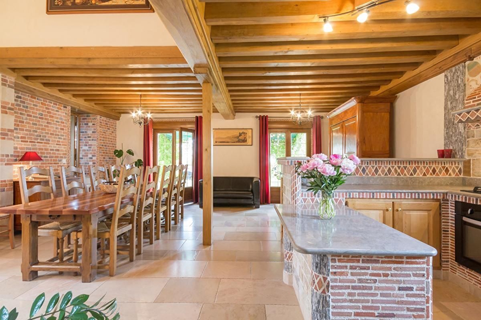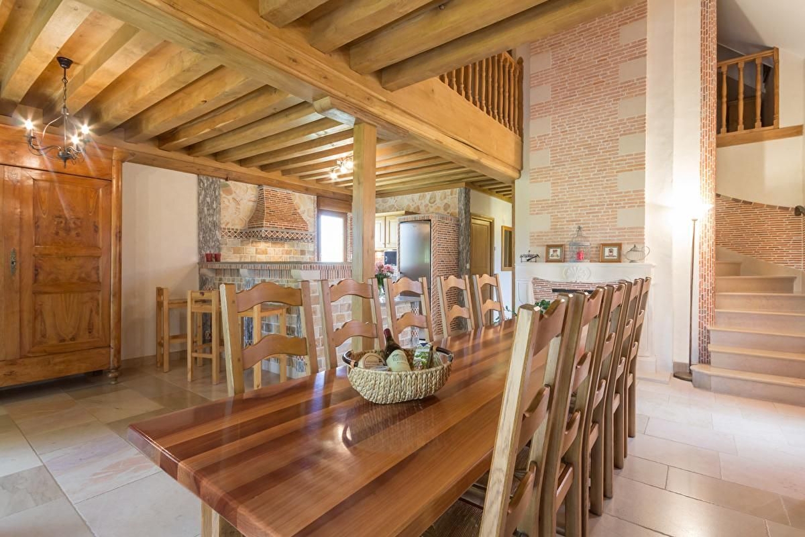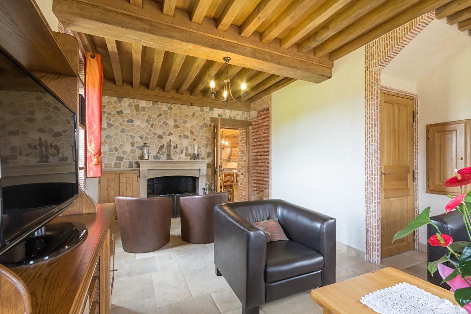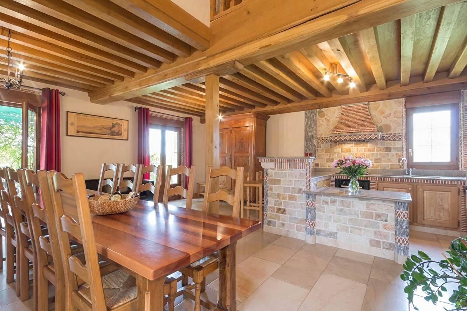 Dans ce village réputé pour son fromage et son château du XIIe siècle, ancienne maison de garde barrière restaurée avec beaucoup de goût et de cachet. Rénovation qui fait la part belle à la pierre et au bois avec des matériaux nobles et un cachet authentique : pierres de Chassagne, tomettes, plafond à la Française, escalier en pierre.