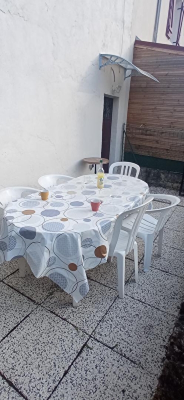 Composition : Maison de bourg mitoyenne. Wifi. Chauffage électrique. Rdc : séjour-cuisine-salon, Wc indépendants. 1er étage : 2 chambres en enfilade (lit 2 p. 140x190cm / 2 lits 1 p. 90x190cm), salle d'eau (douche). Terrasse close + jardin clos (80m²) + parking privatifs (petit chemin public non passant en impasse entre la terrasse et le jardin). Borne recharge pour véhicules électriques (facturation Kwh "au réel"). Supermarché 1 km. 2 vélos fournis gratuitement.