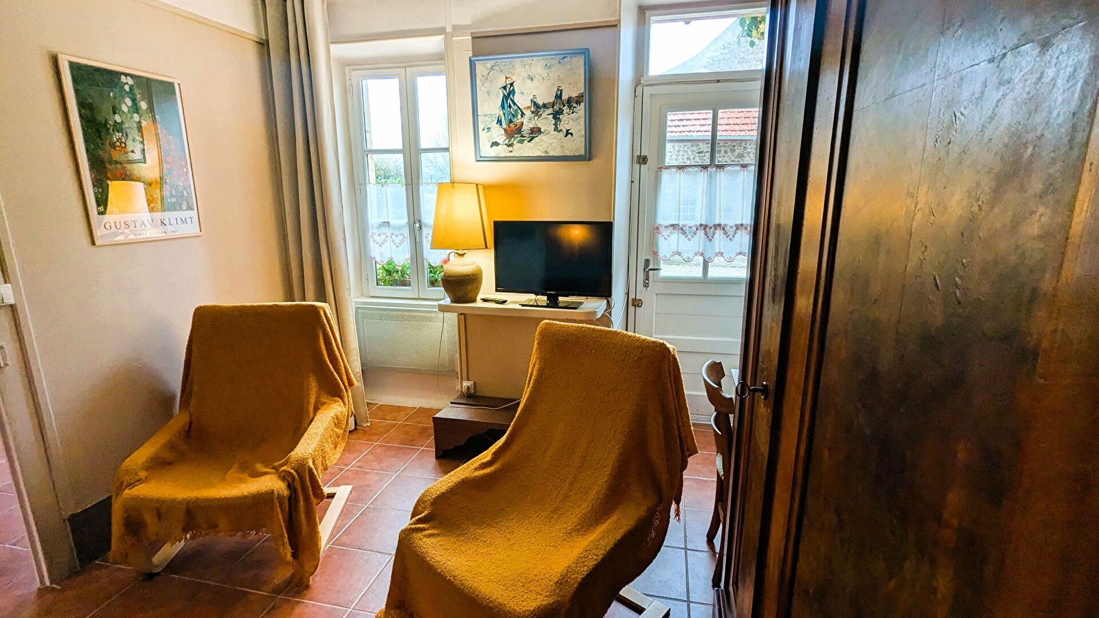 Cuisine/séjour avec poêle à bois (bois gratuit), 1 chambre (1 lit 2 personnes et 1 lit appoint enfant sur demande), salle d'eau avec WC. Cour fermée et fleurie commune avec propriétaire.