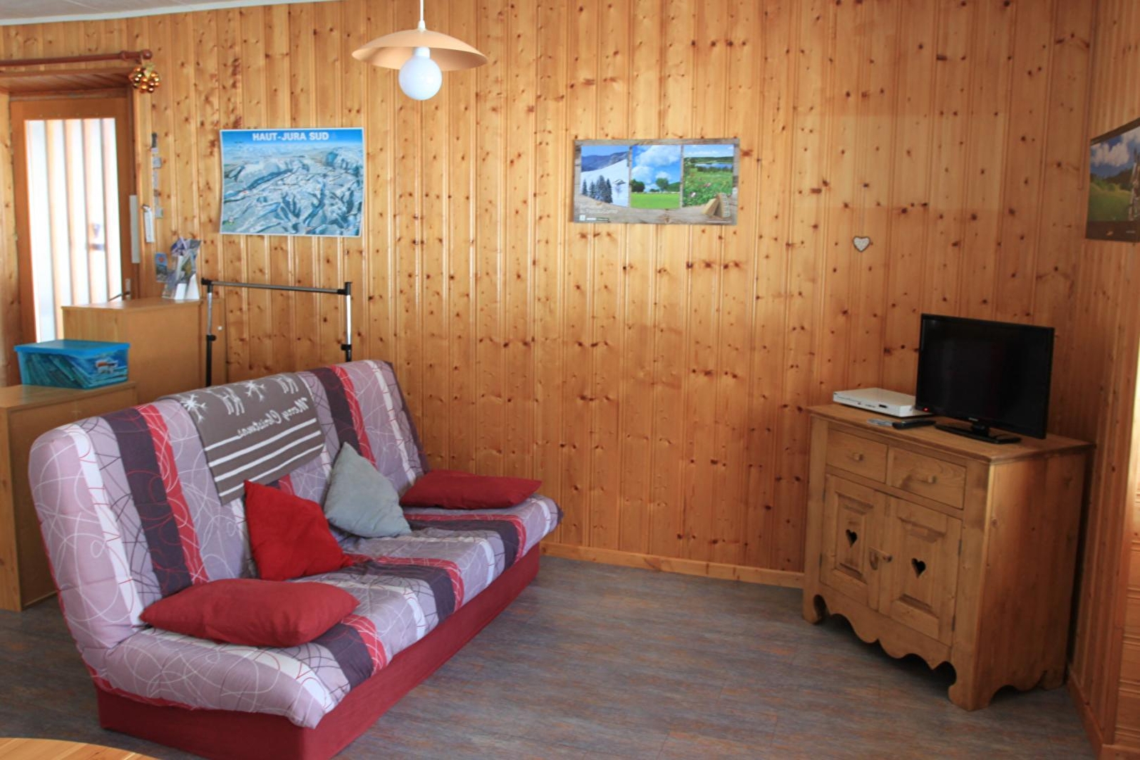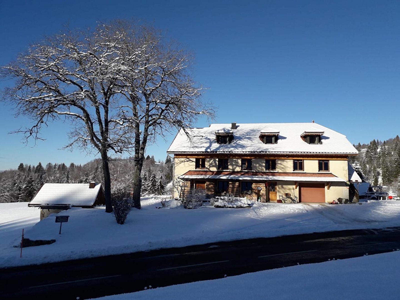 Logement à l'étage de la maison du propriétaire, située au cœur du Parc Naturel régionale du Haut Jura, dans un site naturel préservé: Les Hautes Combes du Jura, en pleine nature, au calme avec vue dégagée sur le paysage. Cuisine, séjour-salon (canapé convertible), salle d'eau, WC indépendant, 2 lits 1 place superposés et 1 chambre avec 1 lit 2 places, lit et chaise bébé. Salon de jardin, barbecue, terrain attenant non clos. Chauffage central. Toutes charges comprises. Local à skis et vélo. Exploitation agricole à 2km, visitable. Accès facile. Documentation, cartes, topo guide à dispo. Parking privé sur place.