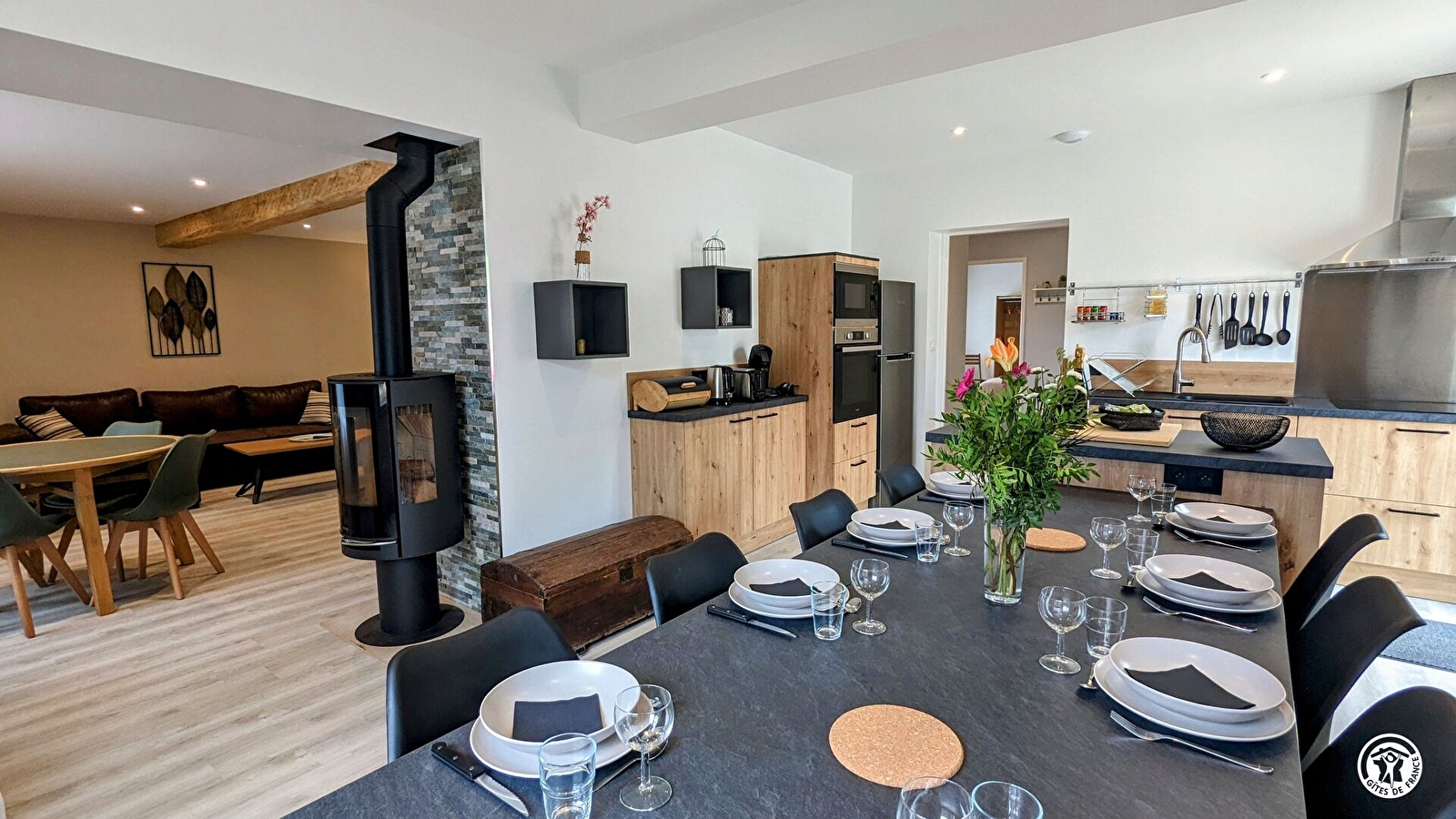Dans un petit village de l'Auxois, à proximité de tous commerces et de nombreux sites touristiques, le Gîte "La Ménétrière" vous propose : rez-de-chaussée adapté aux personnes à mobilité réduite (accès depuis l'extérieur adapté) comprenant : 1 chambre avec 1 lit de 140 cm, 1 WC indépendant, 1 salle d'eau avec douche italienne, 1 cuisine moderne entièrement équipée avec espace salle à manger, ouverte sur salon avec poêle à bois, table de jeux, bibliothèque, jeux de société, TV et wifi.