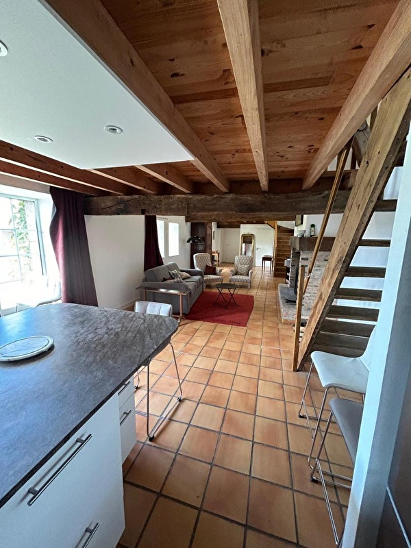 Composition : Maison individuelle jouxtant la résidence secondaire des propriétaires. Wifi. Chauffage électrique + cheminée. Rdc : séjour-cuisine-salon (canapé convertible 2 p. 140x190cm en appoint), 1 chambre (lit 2 p. 160x190cm), salle d'eau (douche/wc), buanderie. 1er étage : 2 chambres dont 1 en mezzanine (2 lits 1 p. 90x200cm dans chaque), salle d'eau (douche/wc). Jardin + parking privés. Bois: 1ère flambée gratuite et les suivantes à 5 €/unité. Commodités 10 km.