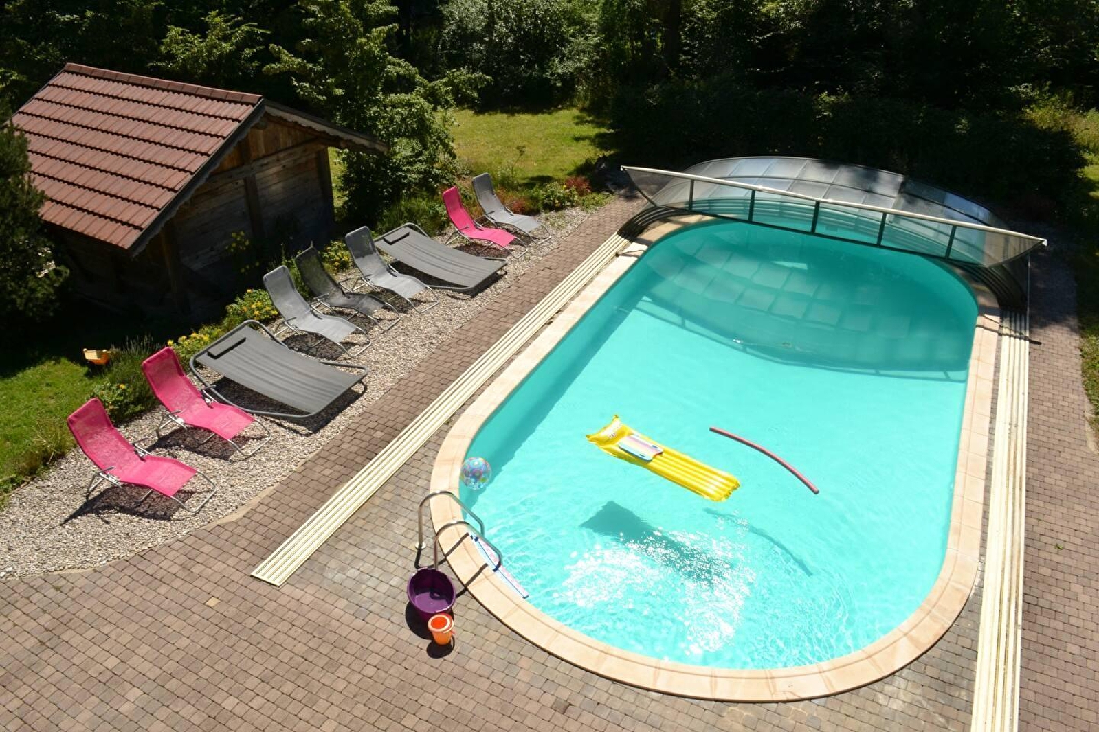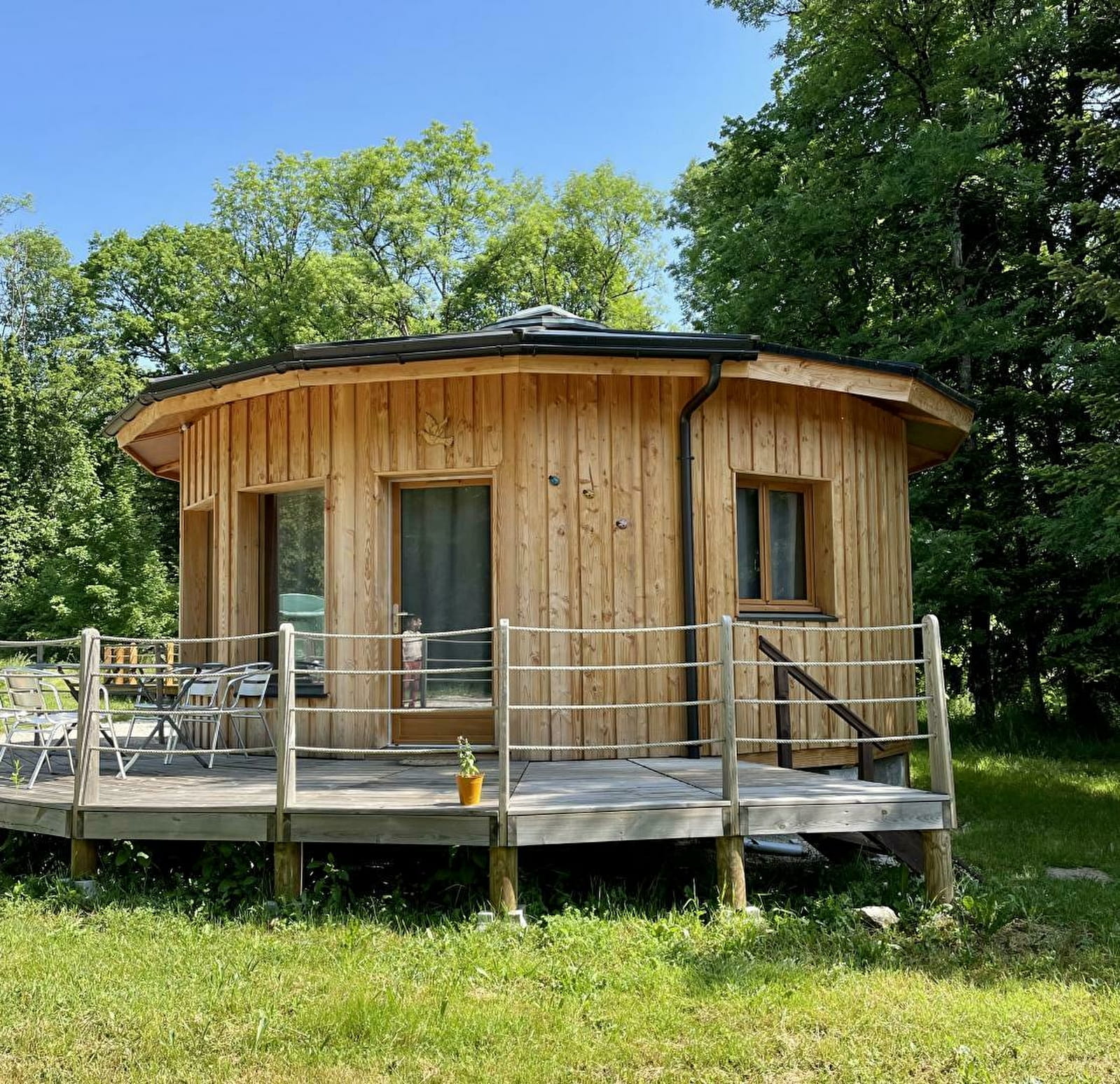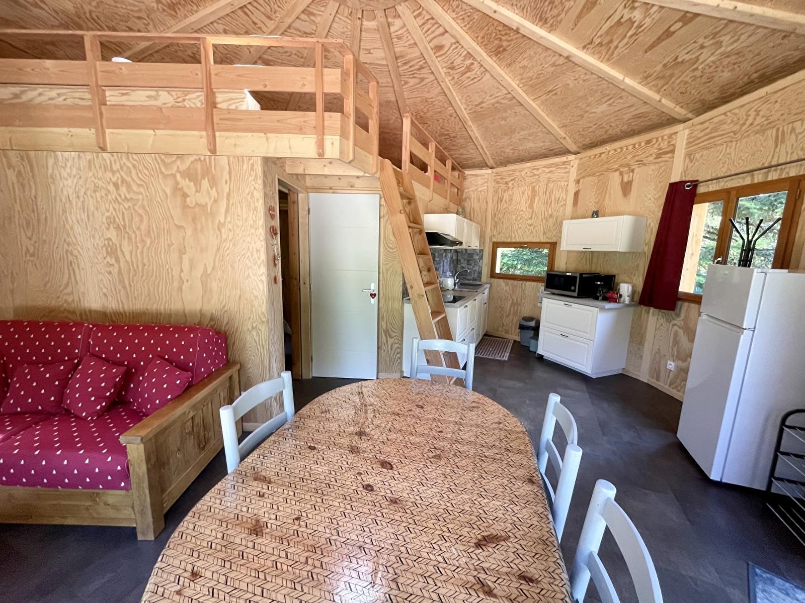 Au cœur du Jura, dans un écrin de verdure, venez savourer détente, repos et relaxation pour vos vacances en couple ou en famille. Cette construction en bois atypique entourée d'arbre provient du savoir-faire d'un constructeur local avec du bois du Jura. Elle se compose d'une pièce de vie avec cuisine toute équipée et salon, d'une chambre avec un lit double (140*190), d'une salle d'eau avec douche et WC. Les 2 autres couchages (2 lits simples)sont situés en mezzanine (hauteur sous plafond maximale de 1.40m) Côté extérieur, vous pourrez profiter d'une terrasse privative avec salon de jardin et barbecue. En commun avec d'autres hébergement, un parc arboré de 2 hectares, agrémenté de la piscine familiale mise à disposition (en saison estivale), d'un chalet-sauna nommé Braza, et d'un bain nordique. Séance de magnétisme sur place sur réservation. Idéalement situé pour partir à la découverte de Poligny, capitale du Comté, d'Arbois réputée pour son vin, ou de la ville thermale de Salins les Bains et de sa Grande Saline, classée au patrimoine mondial de l'UNESCO. De nombreuses activités de plein air vous attendent également : randonnées, découverte des lacs et cascades ou encore accrobranche. Possibilité de réserver une deuxième Mignonette (Coccinelle - Référence G6016) - Animal sur demande