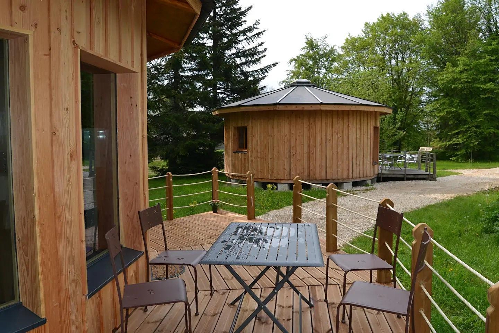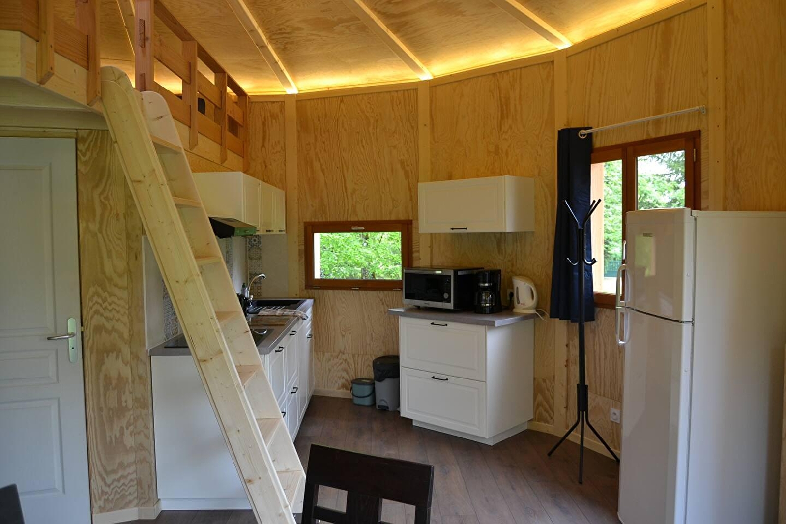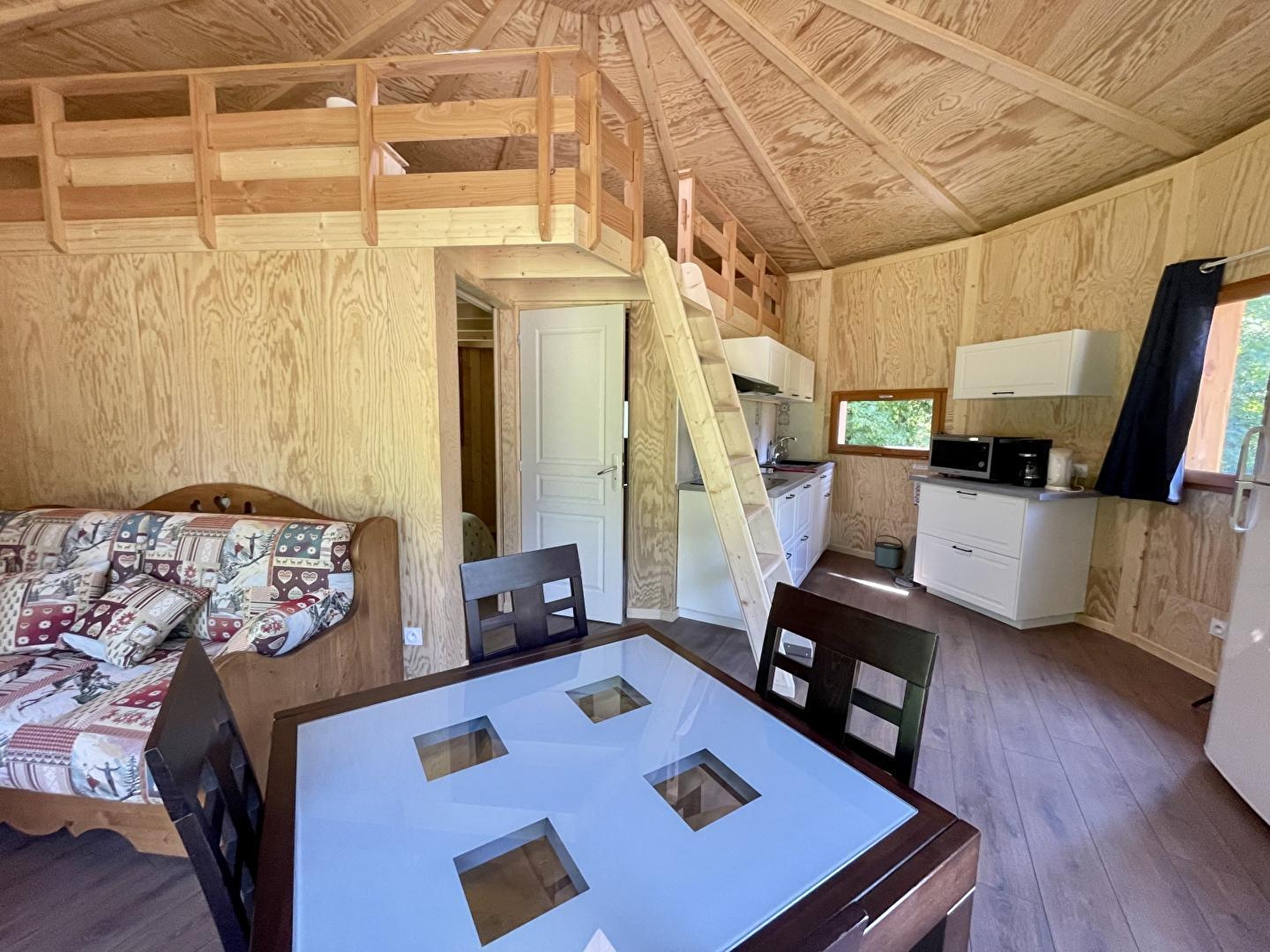 Au cœur du Jura, dans un écrin de verdure, venez savourer détente, repos et relaxation pour vos vacances en couple ou en famille. Cette construction en bois atypique entourée d'arbre provient du savoir-faire d'un constructeur local avec du bois du Jura. Elle se compose d'une pièce de vie avec cuisine toute équipée et salon d'une chambre avec un lit double (140*190), d'une salle d'eau avec douche et WC. Les 2 autres couchages (2 lits simples)sont situés en mezzanine (hauteur sous plafond maximale de 1.40m) Côté extérieur, vous pourrez profiter d'une terrasse privative avec salon de jardin et barbecue. En commun avec d'autres hébergement, un parc arboré de 2 hectares, agrémenté de la piscine familiale mise à disposition (en saison estivale), d'un chalet-sauna nommé Braza, et d'un bain nordique. Séance de magnétisme sur place sur réservation. Idéalement situé pour partir à la découverte de Poligny, capitale du Comté, d'Arbois réputée pour son vin, ou de la ville thermale de Salins les Bains et de sa Grande Saline, classée au patrimoine mondial de l'UNESCO. De nombreuses activités de plein air vous attendent également : randonnées, découverte des lacs et cascades ou encore accrobranche. Possibilité de réserver une deuxième Mignonette (Coccinelle - Référence G6016) - Animal sur demande