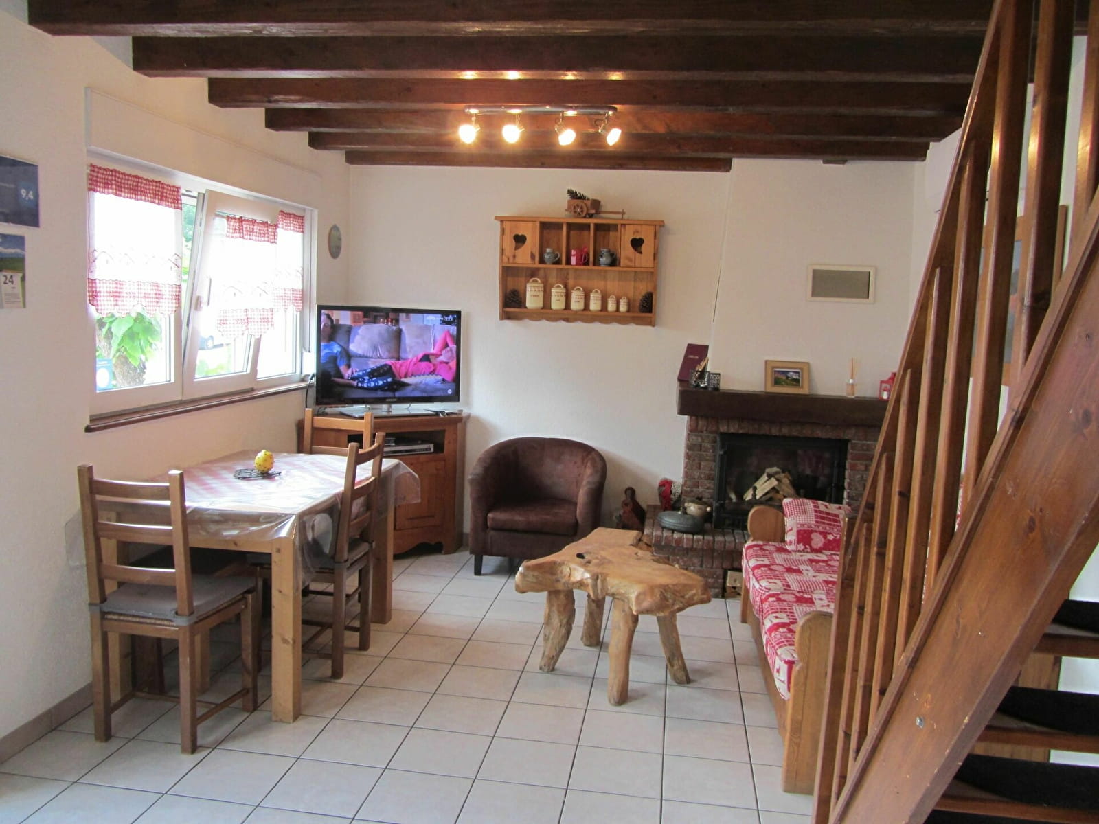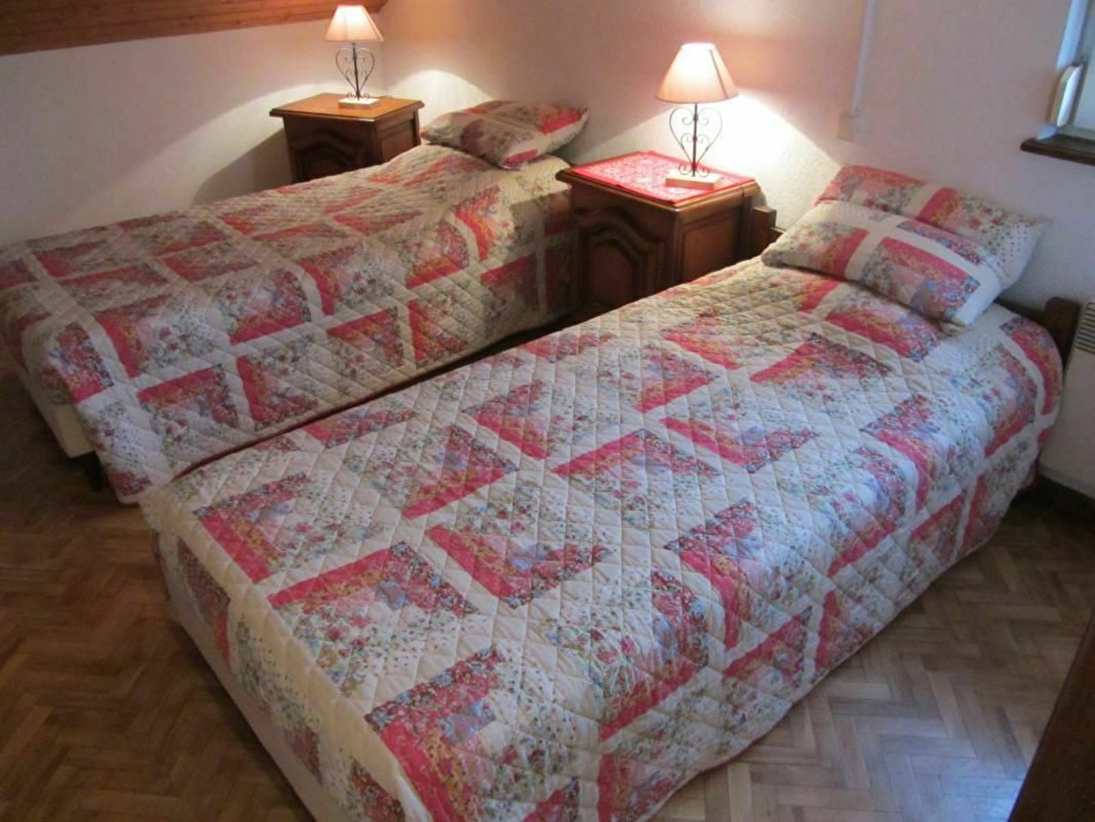 Maison indépendante. Rez-de-chaussée : cuisine intégrée au séjour. Premier étage : deux chambres qui comportent toutes les deux deux lits 90x190.