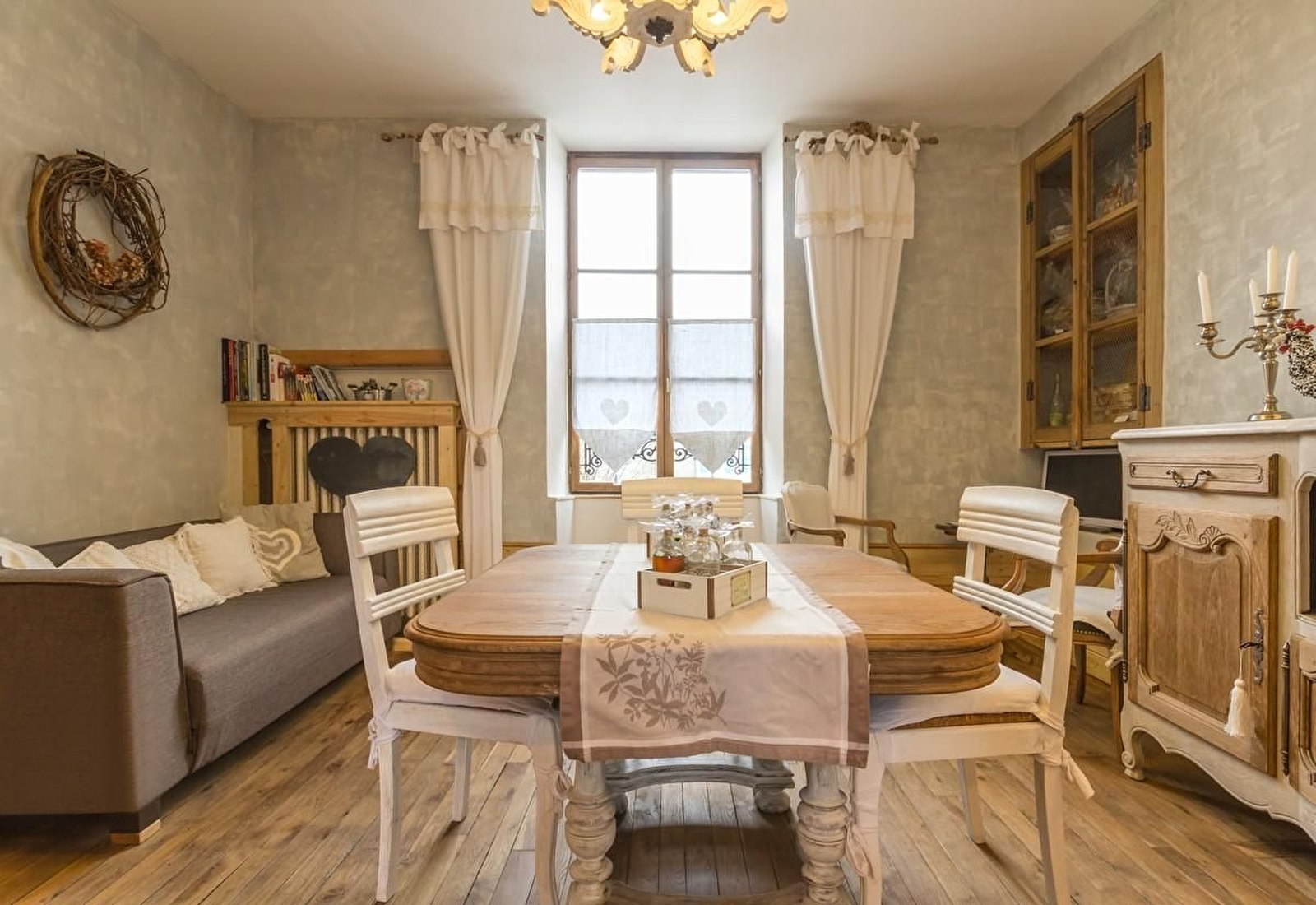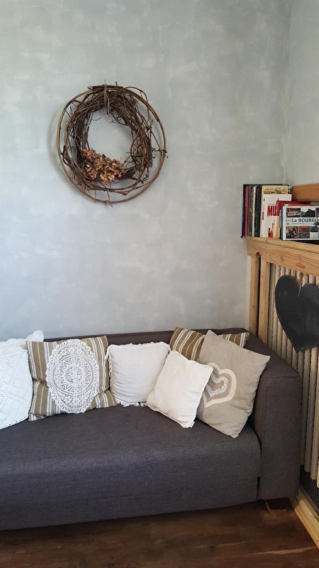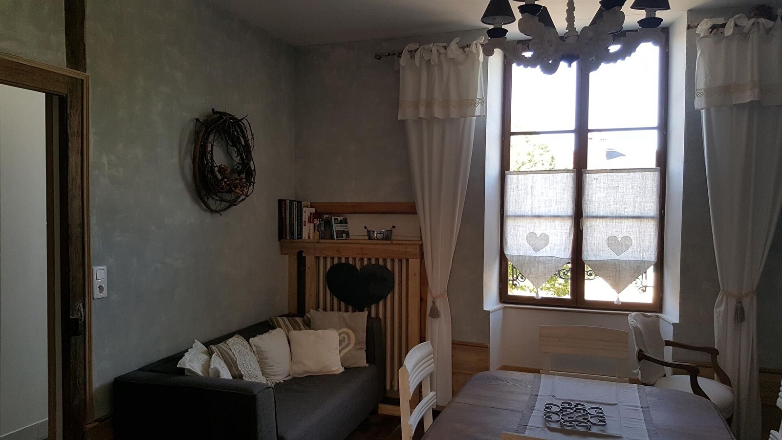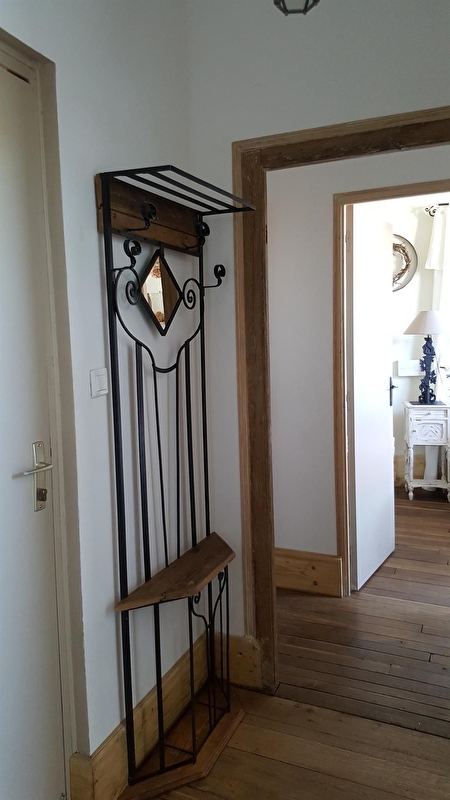Sur la place du village, gîte coquet rénové, au 1er étage d'une maison de maître de 1850 et décoré avec beaucoup de goût et de créativité par les propriétaires.