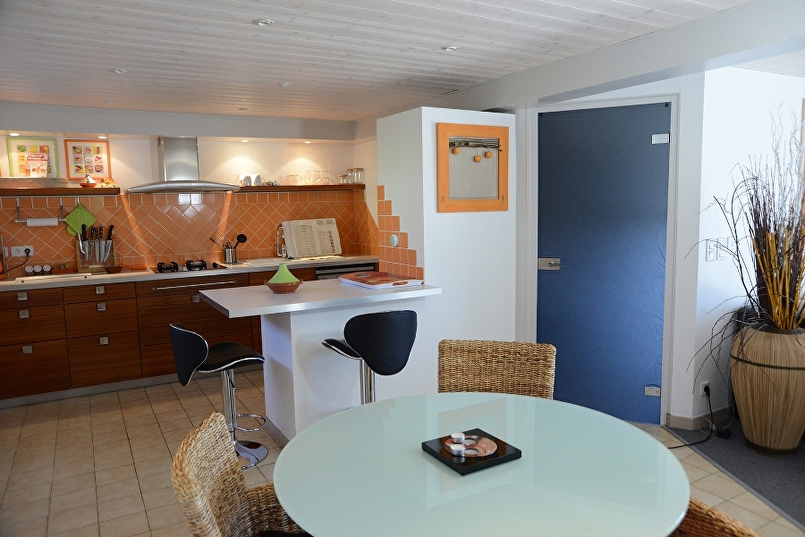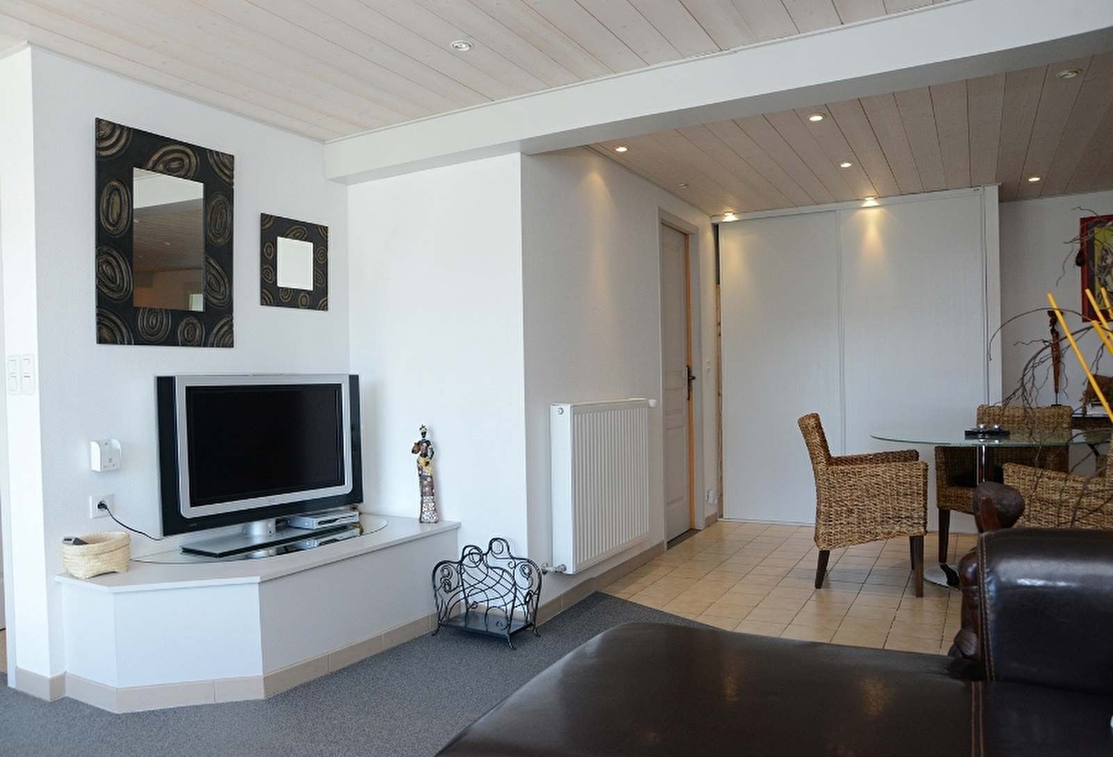 Logement indépendant au RDC entièrement rénové, mitoyen avec un autre gîte. Splendide vue sur le lac de Vouglans. Salon avec canapé convertible (1 couchage supplémentaire possible) salle à manger avec belle cuisine intégrée toute équipée, 1 chambre avec 1 lit 2 pl, sdb avec douche, Wc indépendant. Vous pourrez profiter de la vue imprenable sur le lac directement depuis la terrasse de 28 m². Salon de jardin, barbecue et local en commun pour le lave-linge avec le gîte de l'étage. Bois fourni gratuitement.