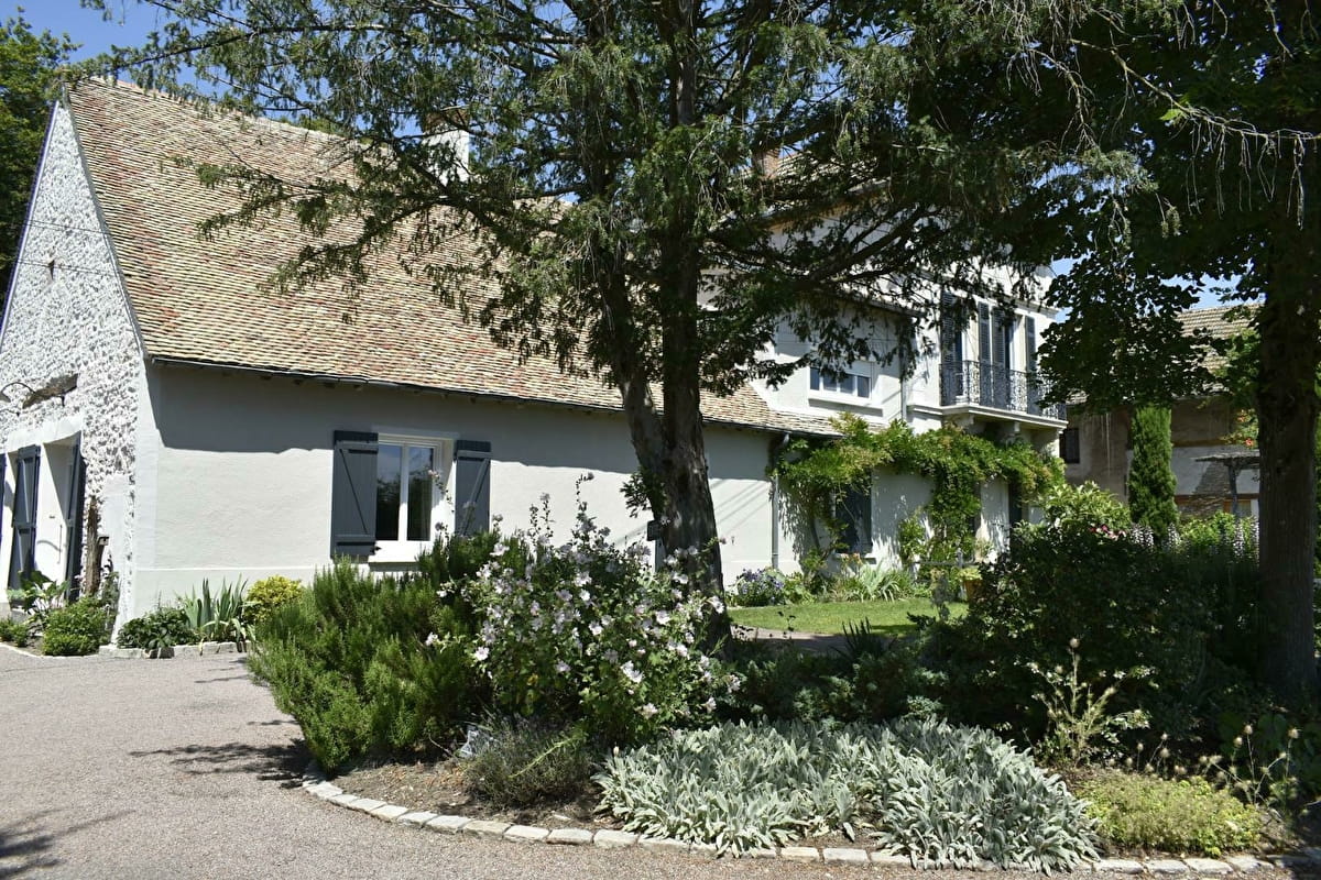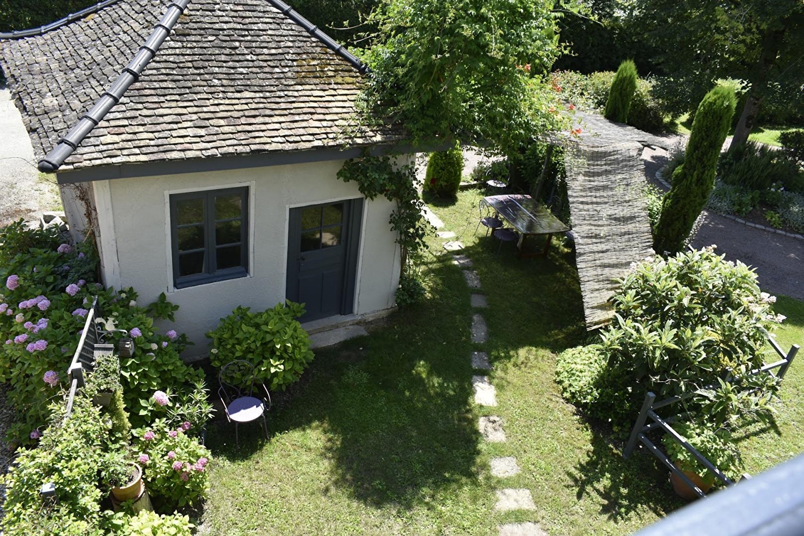 Françoise & Emmanuel vous ouvrent les portes d'une élégante demeure "bourgeoise" de caractère érigée en 1898, pétrie d'histoire "locale" & soigneusement réhabilitée (jadis résidence du "maitre verrier" ayant réalisé les vitraux de la proche cathédrale Saint-Vincent), nichée au cœur d'un petit hameau résidentiel, aux confins d'un important bourg de la campagne "péri-urbaine" chalonnaise, doté de très nombreux commerces & services (plusieurs supermarchés) et d'équipements sportifs & de loisirs notables (belle piscine découverte au style "vintage"). Apaisant cadre champêtre & naturel alentour préservé, blotti en lisière de champs & douces prairies, à l'orée de la vaste forêt domaniale de Givry (littéral "poumon vert" du territoire de 1100 ha, à découvrir lors de reposantes balades à pied ou VTT), à deux pas d'une petite rivière poissonneuse, non loin des vignobles des Côtes Chalonnaises comme des rives de la Saône (paradis des pêcheurs & kayakistes, pour partie protégée en Zone Natura 2000 & ZNIEFF pour ses richesses floristiques & faunistiques). Gîte de très bon confort. Chaleureux cachet campagnard mixant esprit contemporain & touches "shabby chic" dialoguant avec l'âme totalement dépaysante des lieux (boiseries & portes moulurées, superbe escalier, parquets, charpente & poutres… d'époque). Ambiance zen & douillette. Agréable intimiste jardinet fleuri doté d'un appréciable espace terrasse ombragé sous canisse. Accès au jardin de la propriété (3500m²) & sa table de ping-pong.