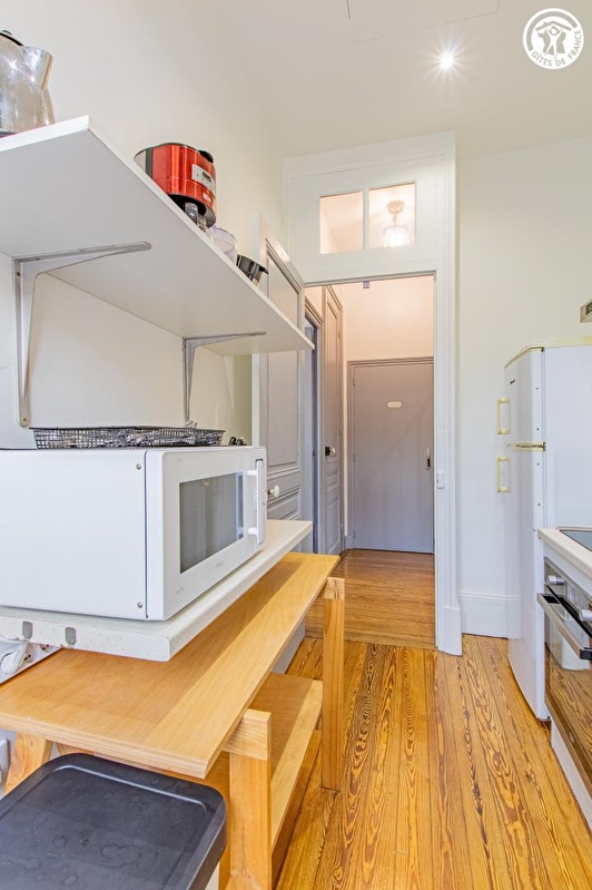 Composition : Gîte aménagé dans maison propriétaires (totale indépendance en mitoyenneté sans vis-à-vis). Wifi (fibre). Chauffage central bois. Duplex (1er + 2ème étage). 1er étage : cuisine, séjour-salon (balcon), 1 chambre (lit 2 p. 140x190cm), salle de bain (baignoire/WC). 2ème étage : 2 chambres (2 lits 1 p. de 80x200cm / 1 lit 1 p. de 90x200cm), WC indépendant. Jardinet (espace terrasse ombragé) + local vélos + parking privatifs. Jardin 3500m² en commun. Commodités 3.5 km. Supermarchés 3 km.