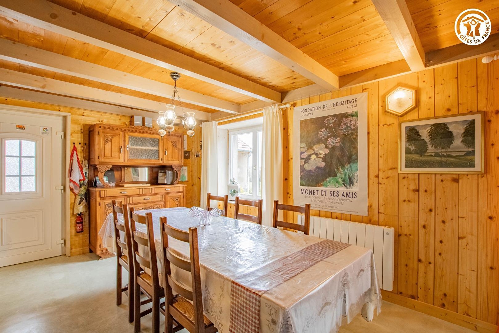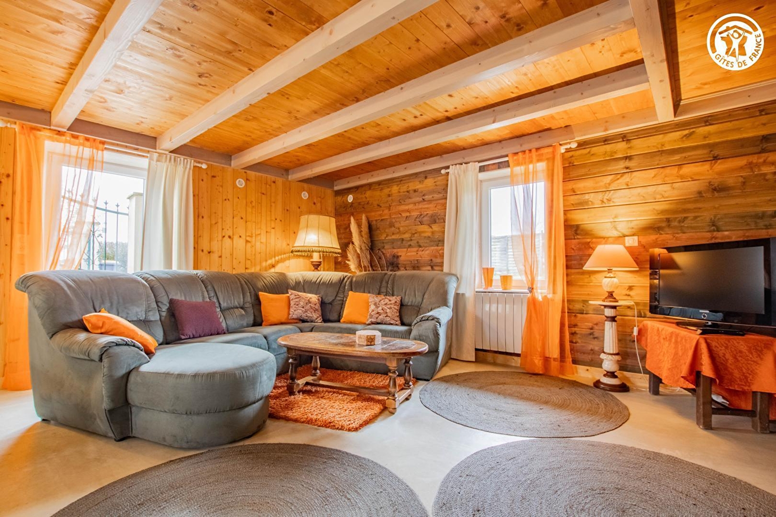 Lina vous ouvre les portes d'une authentique ferme bressane traditionnelle (ayant conservé sa façade d'antan), blottie en "belvédère" sur une mini colline dominant un vaste champ de culture à la lisière d'une petite forêt longée par une bucolique rivière poissonneuse. Totale tranquillité, niché au sein d'un petit hameau rural dispersé en pleine campagne bressane, au creux d'un apaisant écrin préservé de nature & verdure (protégé en ZNIEFF pour ses richesses faunistiques & floristiques), à deux pas d'une vaste forêt sauvage parsemée de grands étangs (protégés en "Zone Natura 2000" pour leurs exceptionnels biotopes, notamment ornithologiques, car abritant des espèces très rares). Cadre 100% apaisant. Littéral havre de paix & repos. Possibilité d'observer la faune sauvage (chevreuils, lièvres, renards, faisans…). Gîte de bon confort. Vaste pièce de vie où trône une authentique & magistrale plaque de cheminée médiévale en fonte avec "armoiries". Chaleureux cachet mixant ambiance campagnarde aux touches contemporaines & esprit montagnard boisé. Cosy & douillet. Belle propriété fleurie & très soignée de 1500m² (engazonnée, arborée & végétalisée) dotée d'une belle terrasse panoramique, d'un petit bassin, d'un "mini" jardin aromatique (à disposition des hôtes) comme de divers petits espaces aménagés de détente & repos. Belle vue dégagée sur la campagne environnante & la chaine du Jura en toile de fond.