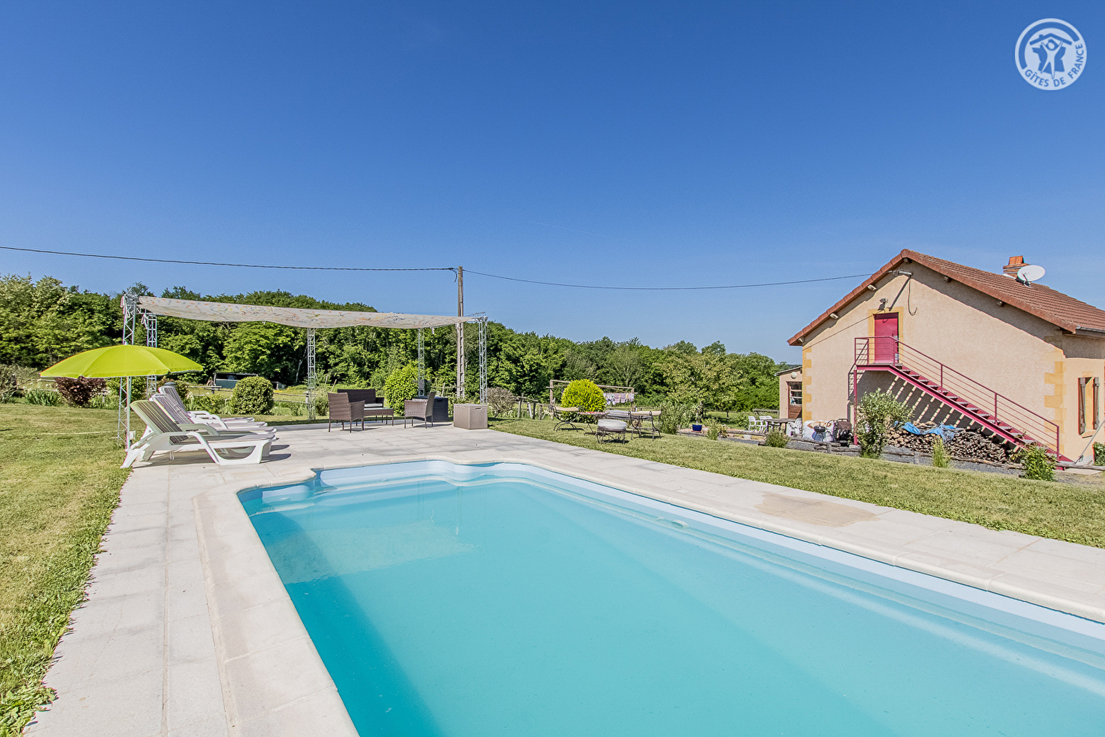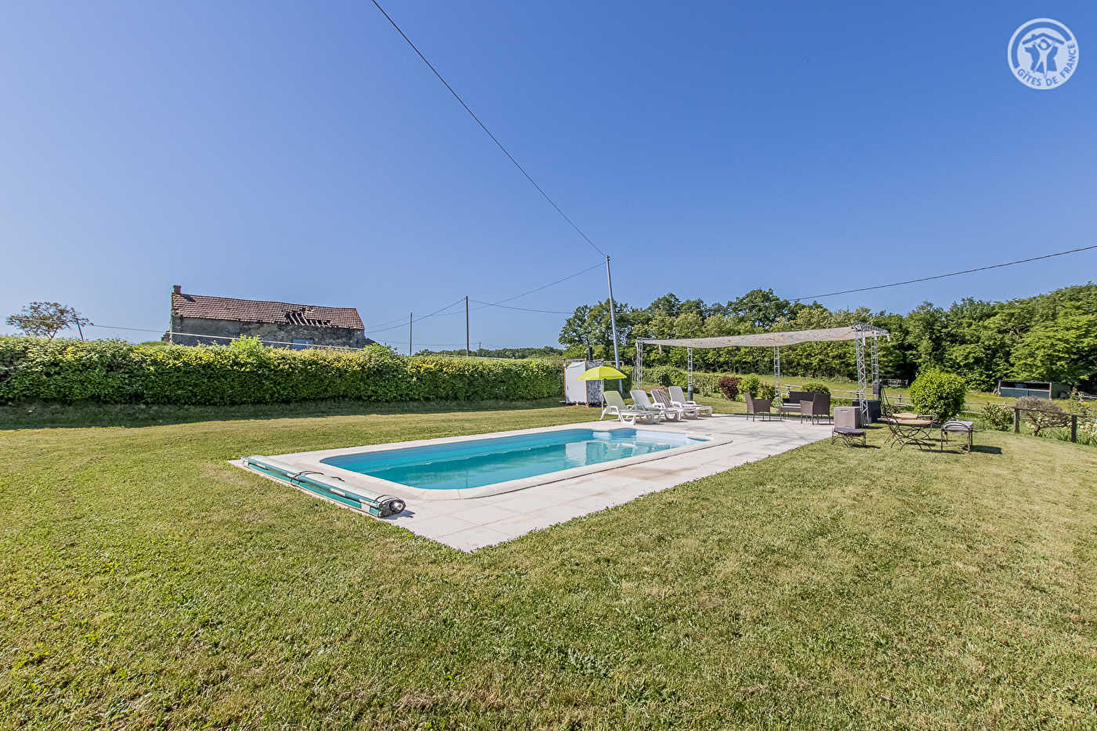 Composition : Accès par 500m de route forestière carrossable. Maison individuelle (étable/écurie au rdc) comprenant 2 gîtes, jouxtant habitation propriétaires (totale indépendance). Wifi (fibre). Chauffage électrique + poêle à bois. Studio au 1er étage (2 lits 1 p. 80x200cm jumelables en lit 2 p. 160x200cm + lit 1 p. 90x190cm), salle d'eau (douche / Wc indépendant). Terrasse privative . Balcon abrité + terrain + piscine chauffée en commun (4x8m). Abri voiture + parking privés. Local vélos. Commerces 7.5 km.
