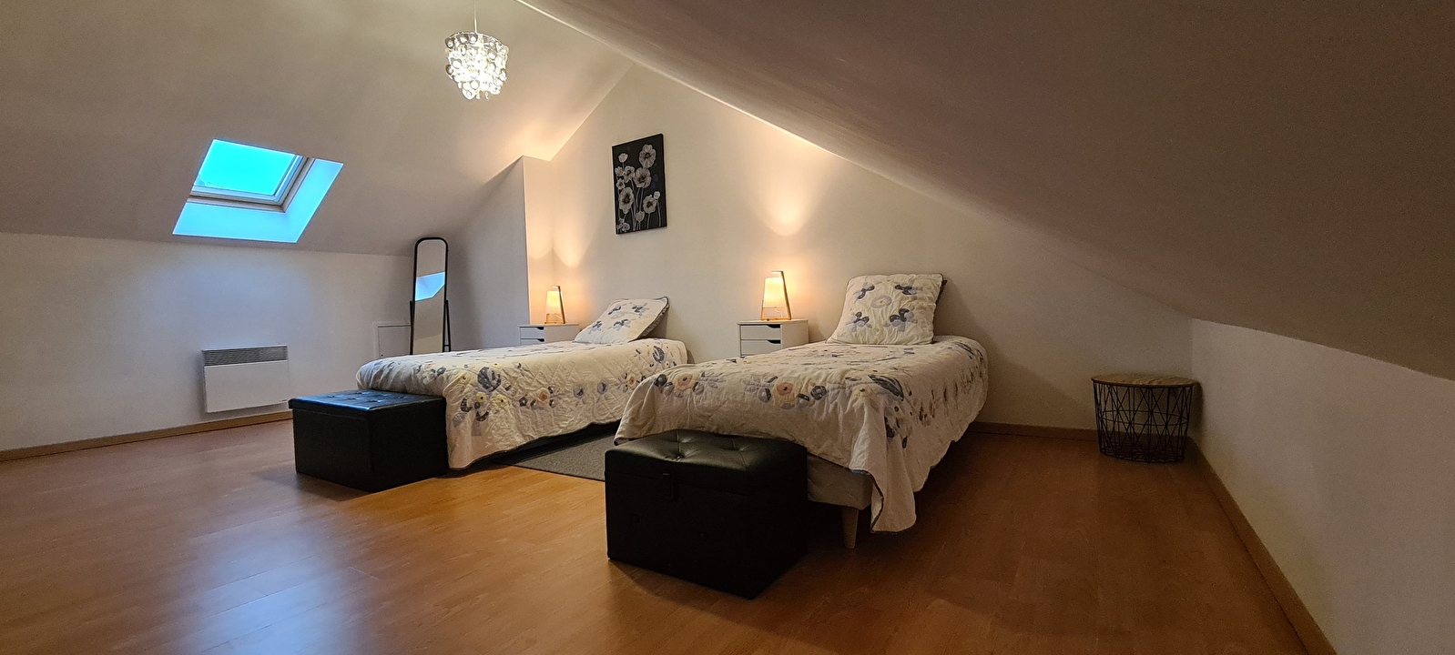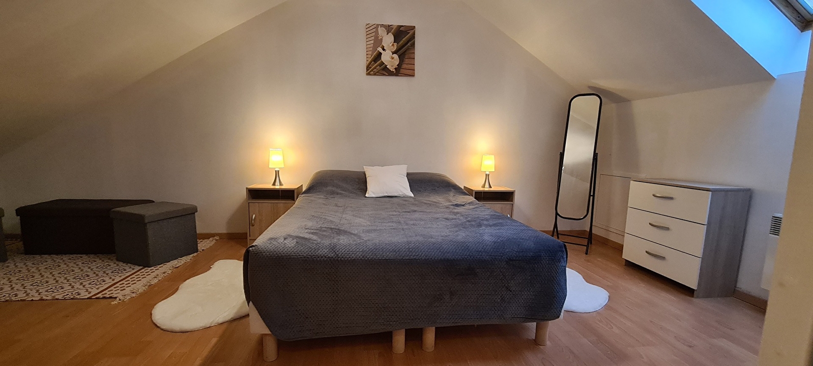 Une chambre avec 1 lit de 140 et une chambre avec 2 lits de 90.