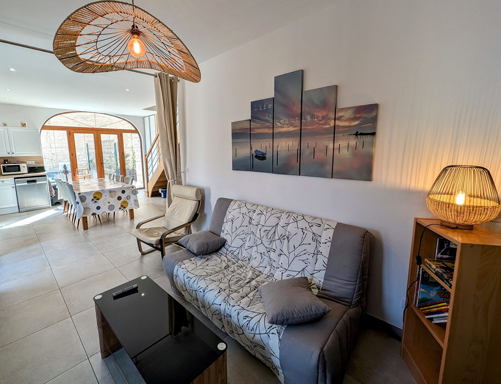 Le gîte est conçu pour accueillir confortablement jusqu’à 4 personnes. Il est équipé pour répondre aux besoins des familles ou petits groupes, dans une ambiance chaleureuse et fonctionnelle. On y retrouve également un spa sur la terrasse et une piscine naturelle partagée.