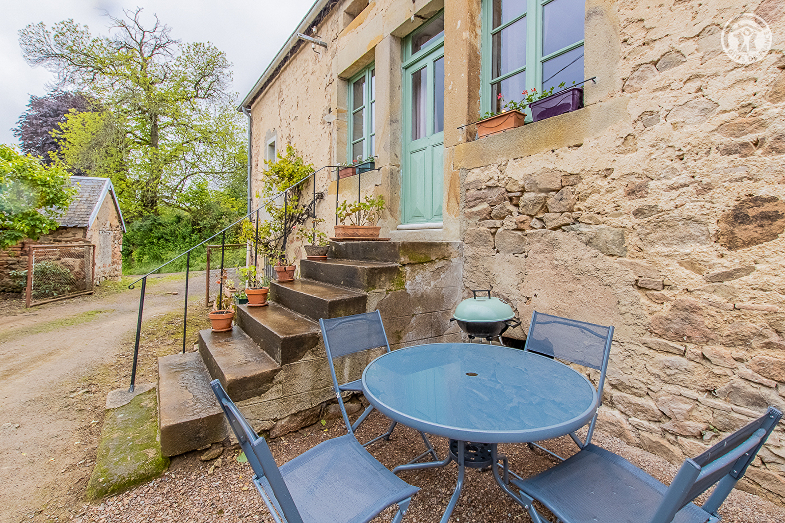 Authentique corps de ferme morvandiau traditionnel du 19ème siècle (intégralement restauré en son intérieur et ayant conservé le charme de sa façade d'origine), situé à l'écart et sans nuisance sur une petite exploitation agricole familiale (élevage bovin charolais, certaines pâturant à deux pas pour le bonheur des enfants). Calme et tranquillité au sein d'un paisible hameau rural niché à flanc de coteau sud-est, sur un bucolique plateau de prairies flanquées de collines boisées, blotti à 500m d'altitude sur les hauteurs du pittoresque village de Cussy-en-Morvan, à 8.5 km du charmant bourg commerçant d'Anost (nombreuses commodités, chapelle & église romane du XIIe abritant les célèbres Gisants d'Anost, chef d'œuvre du XVIIIe, résidence de nombreux artistes). Magnifique environnement naturel & champêtre de montagne douce, lové au creux d'une verdoyante vallée du Haut Morvan, superbe écrin préservé alternant champs & prairies, vastes forêts domaniales & petites rivières poissonneuses. Cadre totalement relaxant. Spacieux gîte de bon confort. Chaleureux cachet campagnard aux accents contemporain (sublimé par l'apaisante couleur rose qui anime les lieux en "fil conducteur"), marié à l'ambiance dépaysante d'une ancienne demeure de pays chargée d'histoire (conservation de nombreux élément d'origine : poutres & plafonds à la française, manteau de cheminée, portes, ancien four avec « grille à pain »…). Belle pièce de vie lumineuse. Petite terrasse en gravier sur cour privative, jouxtant un mini poulailler & le jardin potager des propriétaires (la promesse de possibles œufs & légumes frais avec leur accord). Agréable vue sur la campagne environnante.