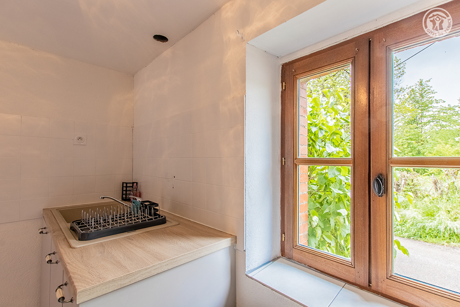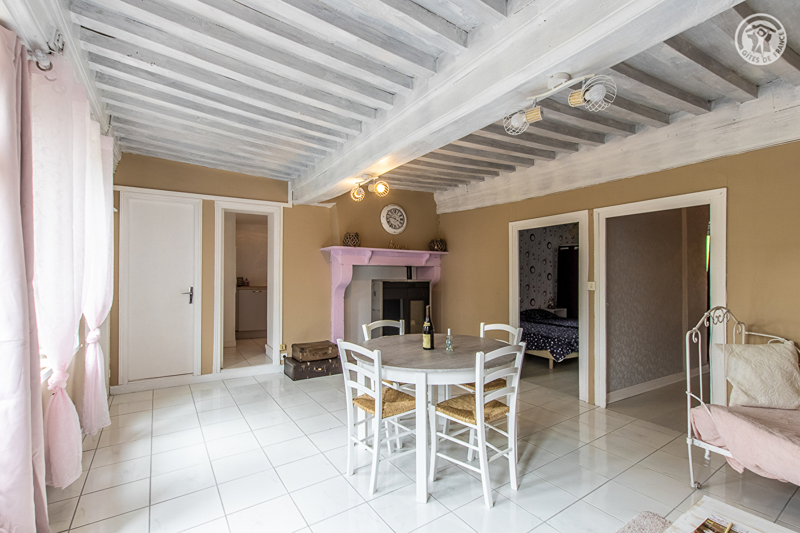 Composition : Maison mitoyenne. Wifi. Chauffage par poêle à bois. Rdc surélevé (7 marches) : cuisine, séjour-salon, 2 « espaces » chambres indépendants séparés par une ouverture communicante avec rideau (lit 2 p. 140x190cm / 2 lits 1 p. 90x190cm), salle d'eau (douche/Wc). Terrasse et cour privatives. Commerces & services 8 .5 km.
