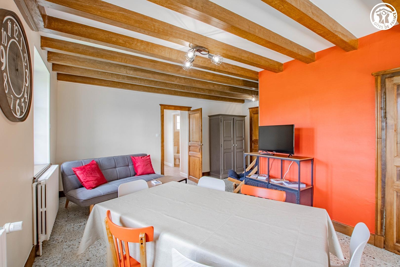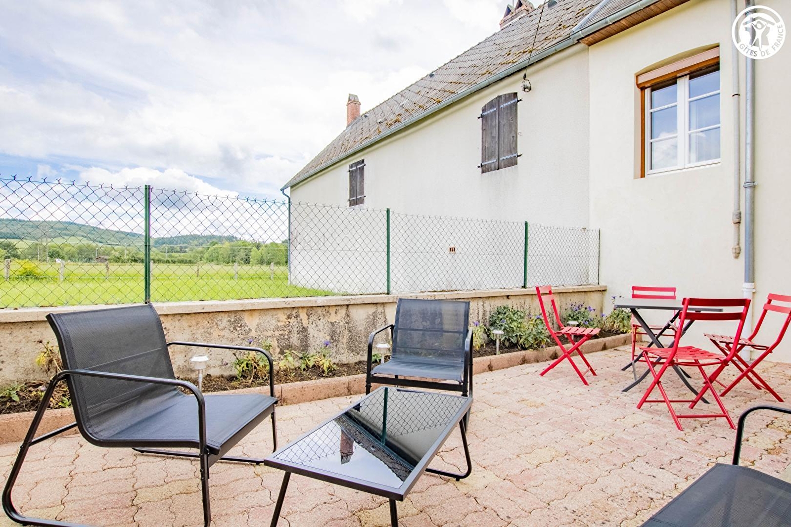 Marylène vous accueille au sein d'une authentique demeure morvandelle du début XXe intégralement restaurée avec soins, sise en pleine campagne autunoise au cœur même du Parc Naturel du Morvan, en bordure de route & lisière de prairies, à deux pas des bois alentour, au sein d'un hameau résidentiel jouxtant le cœur du petit village de la Celle-en-Morvan, abritant la "Roseraie des Villages de France", exceptionnelle "roseraie", l'une des plus belle de France comprenant plus de 1000 rosiers & plantes vivaces sur 6000m² (agrémentée de divers jeux d'enfants & activités ludiques dont un labyrinthe de verdure…), totalement insolite puisque créée sur la base d'échantillons provenant de rosiers de 230 communes françaises ! Magnifique cadre paysagé environnant, blotti au creux d'une verdoyante vallée traversée par une bucolique petite rivière poissonneuse, cerclée de vastes massifs forestiers sauvages. Sublime écrin préservé de montagne douce, riche de nombreux belvédères panoramiques, à parcourir lors d'apaisantes balades à pied ou VTT. Spacieux gîte de bon confort. Chaleureux cachet campagnard aux accents contemporain, conjugué à l'âme un brin "vintage" totalement dépaysante des lieux (ravissant sol d'époque en terrazzo). Ambiance cosy & douillette. Équipement complet de qualité. Large agréable terrasse nichée à l'arrière de la maison (aménagée sur un petit terrain clos), ouverte sur les prairies voisines, ombragée & exposée (selon), agrémentée de salons de jardin & de détente "outdoor", offrant une belle vue dégagée sur la campagne environnante.