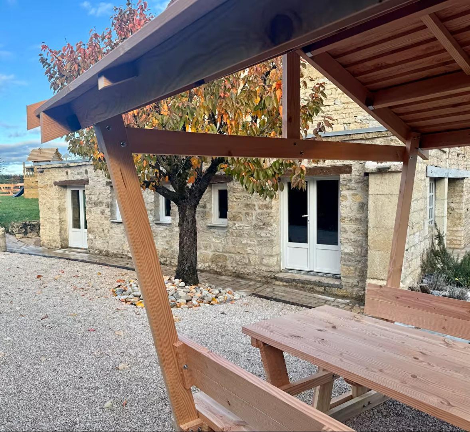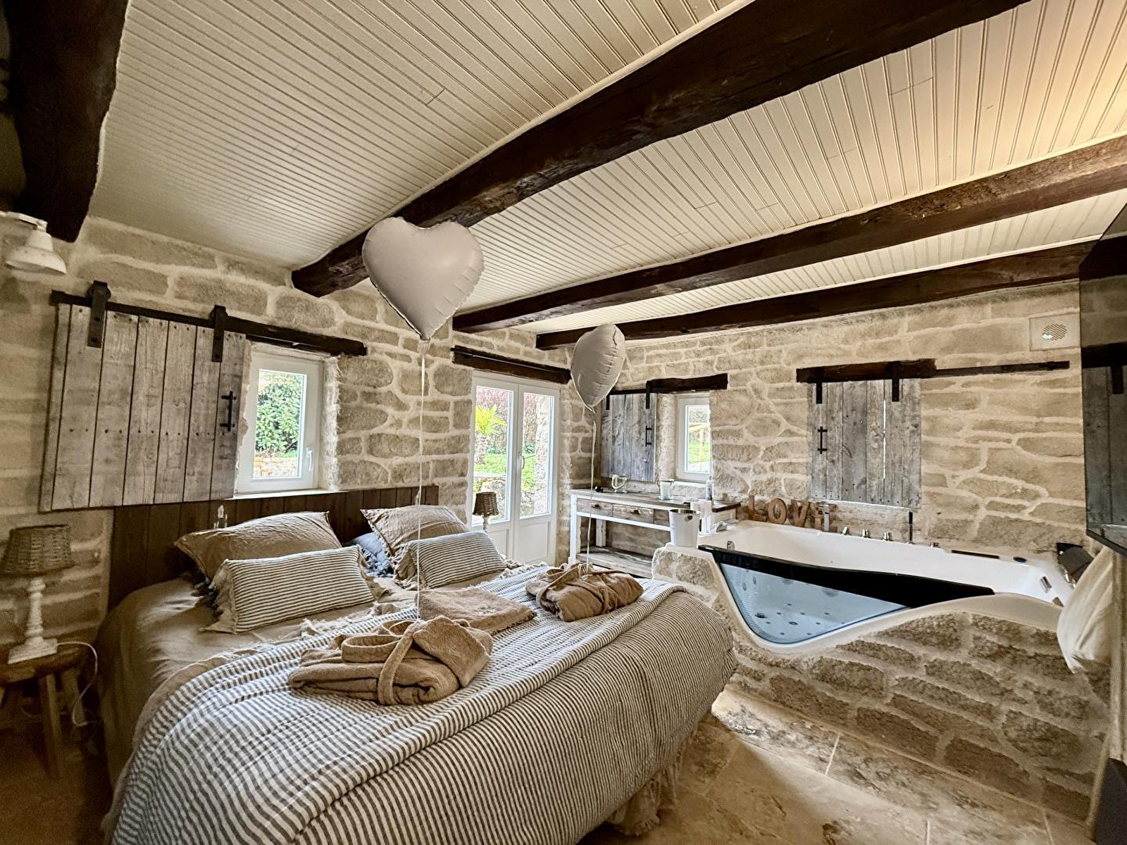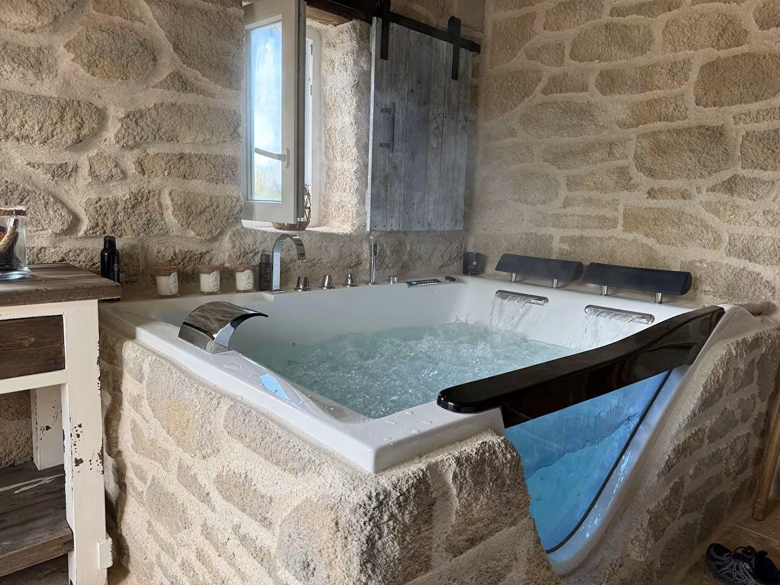 Petite Longère de Campagne privée en pierre de plain-pied située en annexe du gîte Le Petit Refuge (G2687) CUISINE - 10 m² cuisine en pierre totalement équipée un piano de cuisson Smeg Un réfrigérateur-congélateur Create Une machine à café Create Robot Multifonction Magimix Un Grille-Pain Une Bouilloire Plats, vaisselles et ustensiles nécessaires. Appareil à raclette (pour 2) Appareil à fondue (pour 2) 1 SUITE CHAMBRE A THEME - 16 m² petit cocon avec sa balnéo spa duo Lit Queen-Size de 160x200 cm TV QLED Ambilight Connectée 126 cm Balnéo Spa pour 2 personnes : balnéothérapie de luxe Spa, 48 jets (plantaires, dorsaux, latéraux...), chromothérapie, 6 Turbo-buses SALLE D'EAU - 6m² Attenante à la suite-chambre Grande douche à l'italienne Meuble 1 Vasque et Mroir WC SALLE DE MASSAGE (en supplément sur réservation) Massage en solo ou en duo LES EXTERIEURS Terrasse privative Terrain de 1961m offrant calme et espaces Aire de jeux Wickey enfant Garage fermé (Porte motorisée) Borne de charge électrique (en supplément) LA GRANGE (espace commpun avec le gîte le petit refuge) Barbecue Weber XXL Espace de loisir Bains de soleil détente Table 16 assises Salon détente Panier de Basket Etabli Voiture enfant